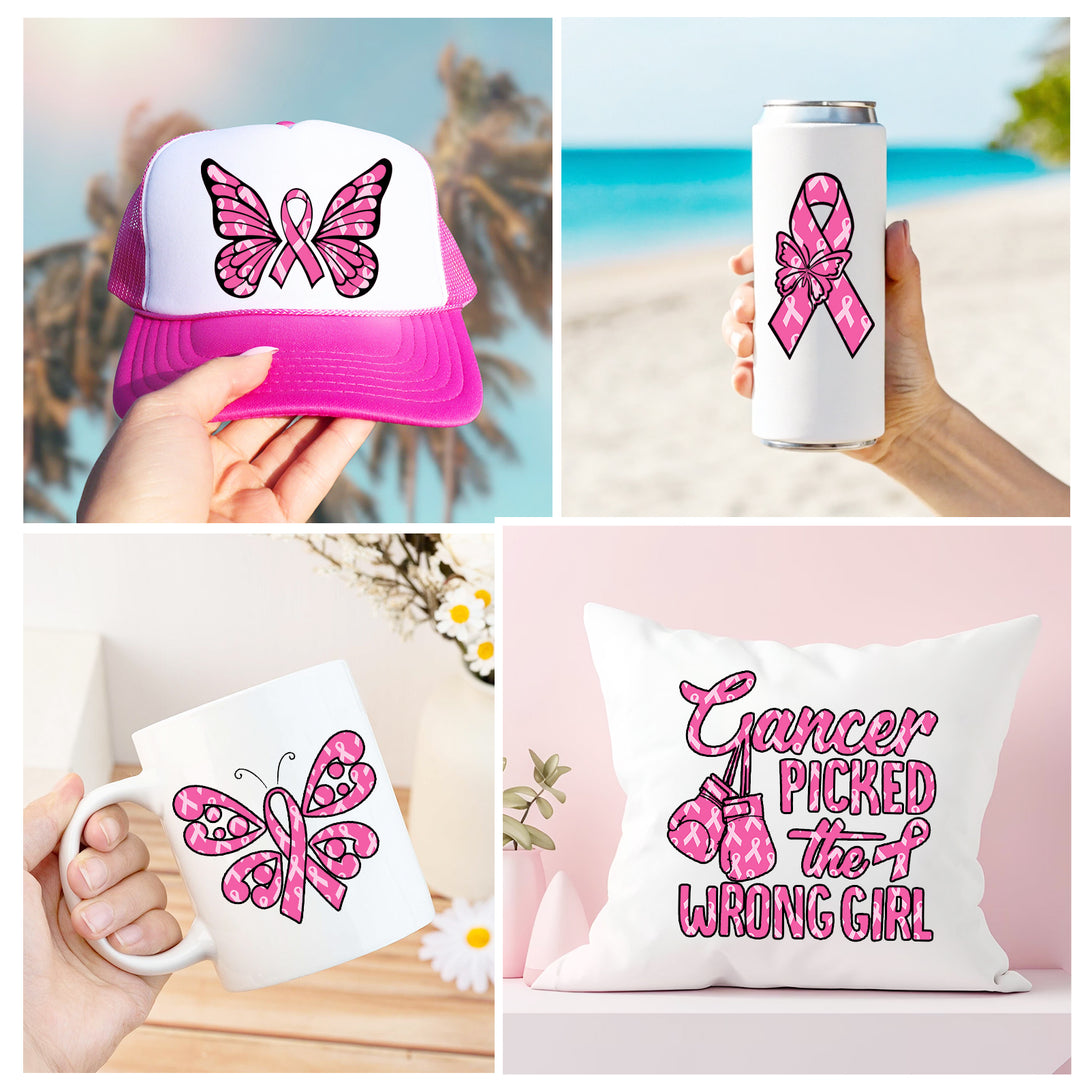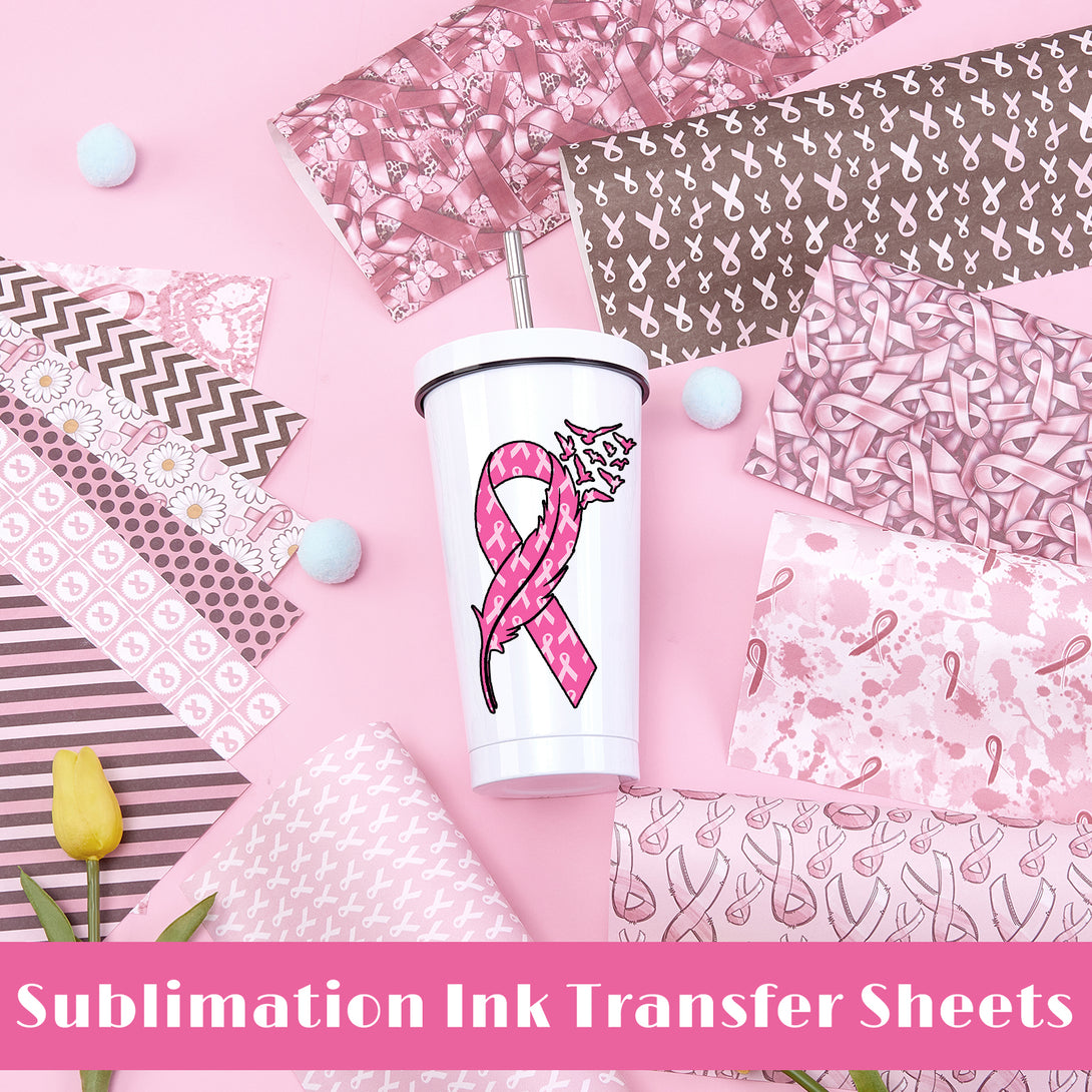 Tintnut Ribbon Pattern Ribbon Sublimation Transfer Paper,Black Pink Ribbon Sublimation Transfer Sheets Compatible with ALL Machine and Easy to use Transfer.