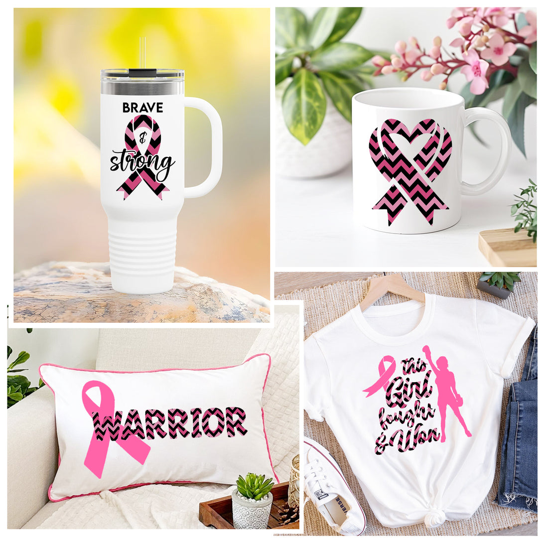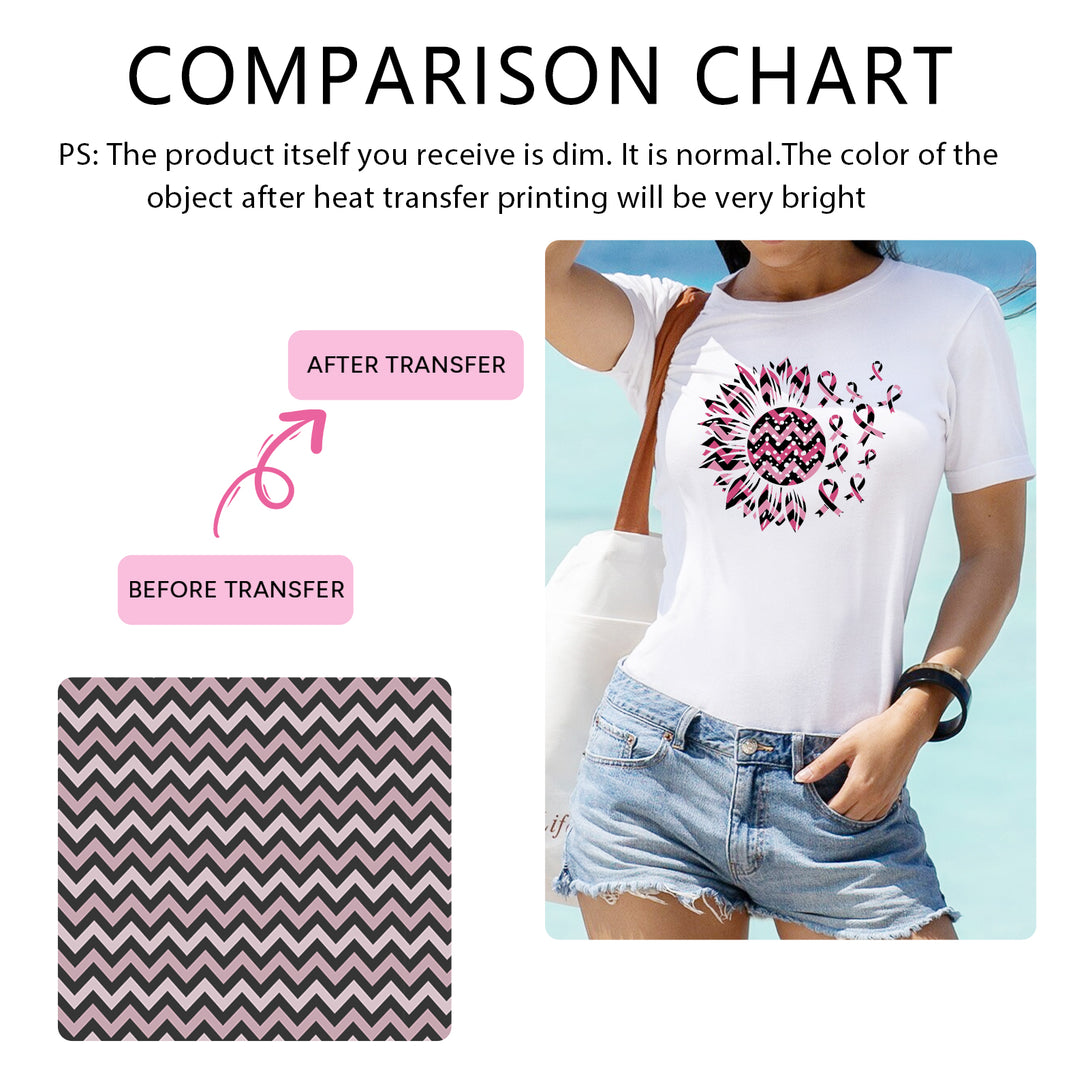 Tintnut Ribbon Pattern Sublimation Transfer Paper,Black Pink Ribbon Sublimation Transfer Sheets Compatible with Cricut for DIY Mugs,T-Shirts and Easy to use Weed.