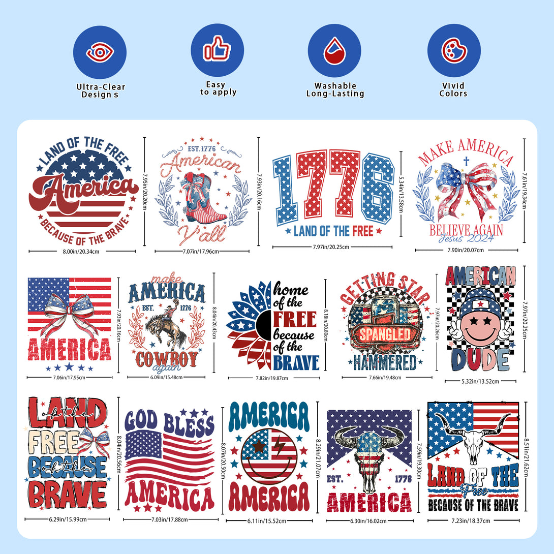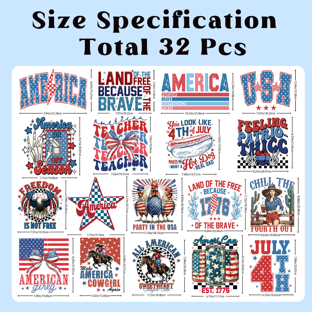 Tintnut Rooster Flag Day DTF Transfers Ready to Press Iron on Transfers-32 Sheets USA Flag Rooster Pattern Iron on Decals for T-Shirts Clothing Heat Transfer Iron on Stickers for Canvas Bag Design