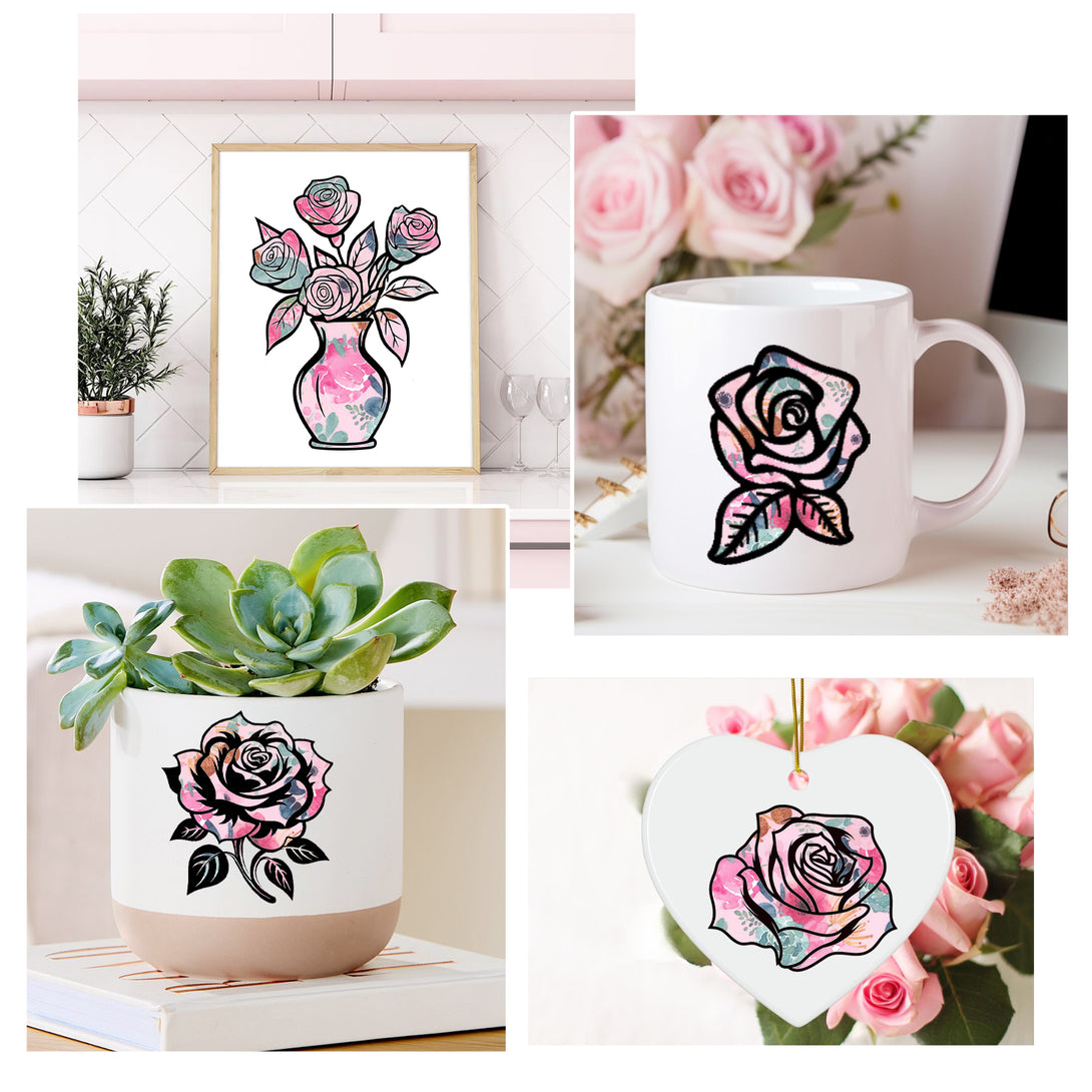 Tintnut Rose Pattern Permanent Vinyl Flower Adhesive Self Sticker, Rose Floral Glossy Self Sticker Water proofing Vinyl