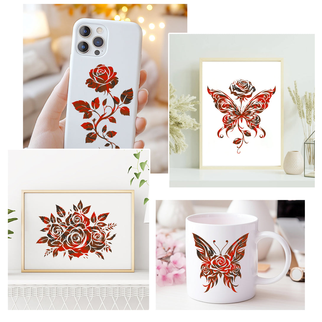 Tintnut Rose Pattern Permanent Vinyl Red Flower Adhesive Vinyl Sheets Floral Self Sticker Water proofing Vinyl
