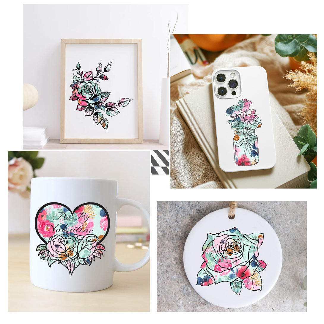 Tintnut Roses Permanent Vinyl Pink Green Adhesive Vinyl Sheets Floral Self Sticker Water proofing Vinyl