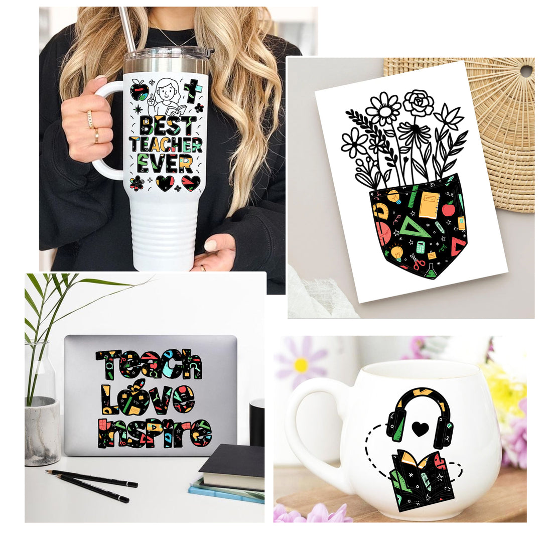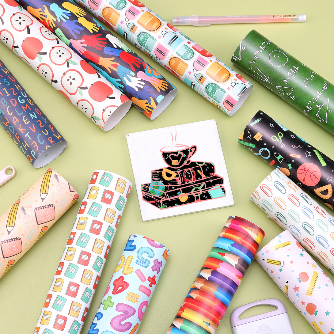 Tintnut School Patterned Permanent Vinyl,Learning Tools Patterned Permanent Adhesive Vinyl for Cutting Machine,Self Sticker Water proofing Vinyl