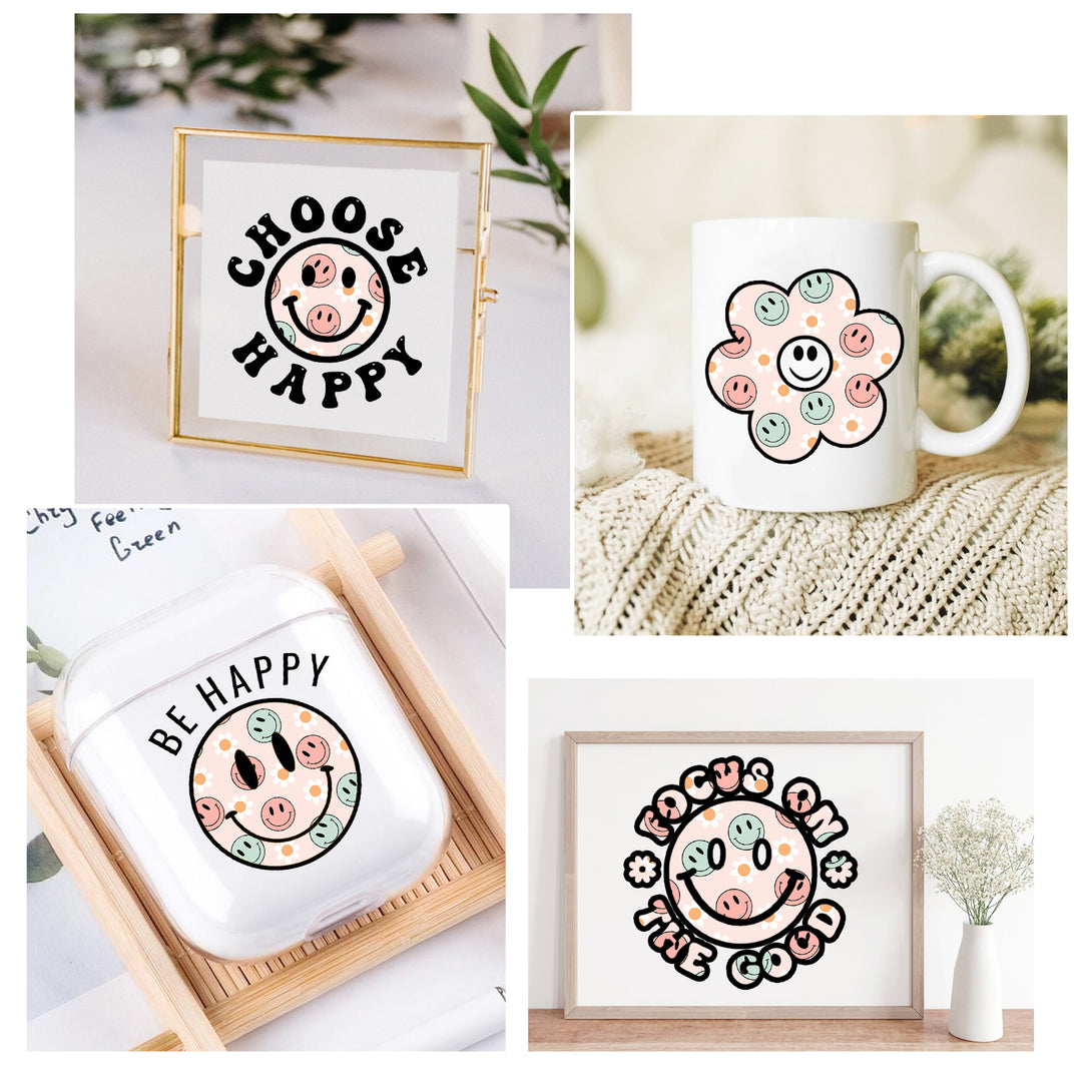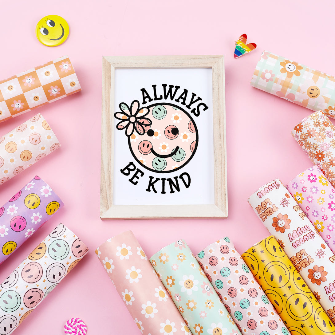 Tintnut Smiley Face Permanent Vinyl,Daisy Flower Adhesive Vinyl, Groovy Pattern Vinyl, Adhesive Outdoor Vinyl for Decor Sticker, Self Sticker Water proofing Vinyl