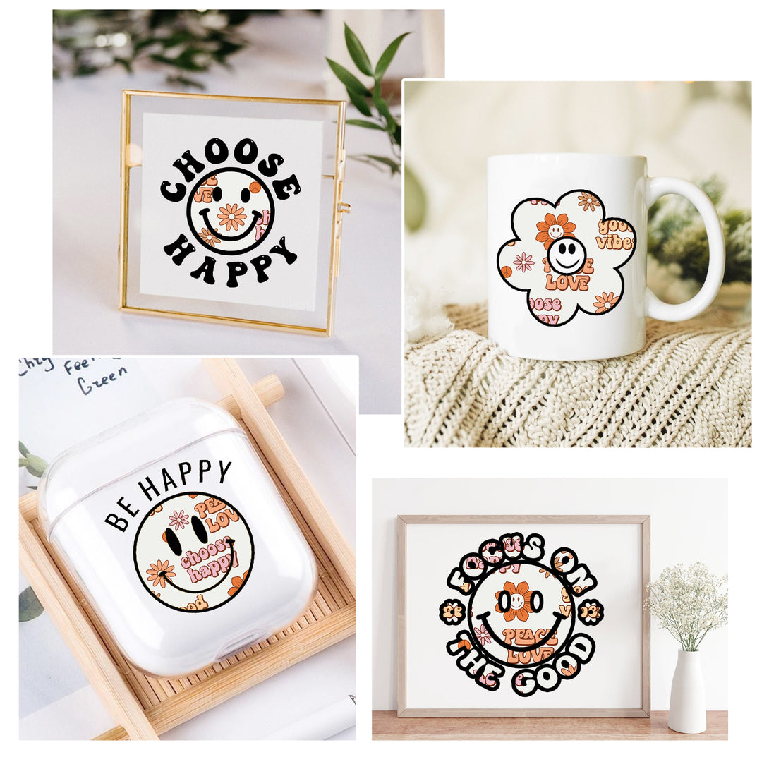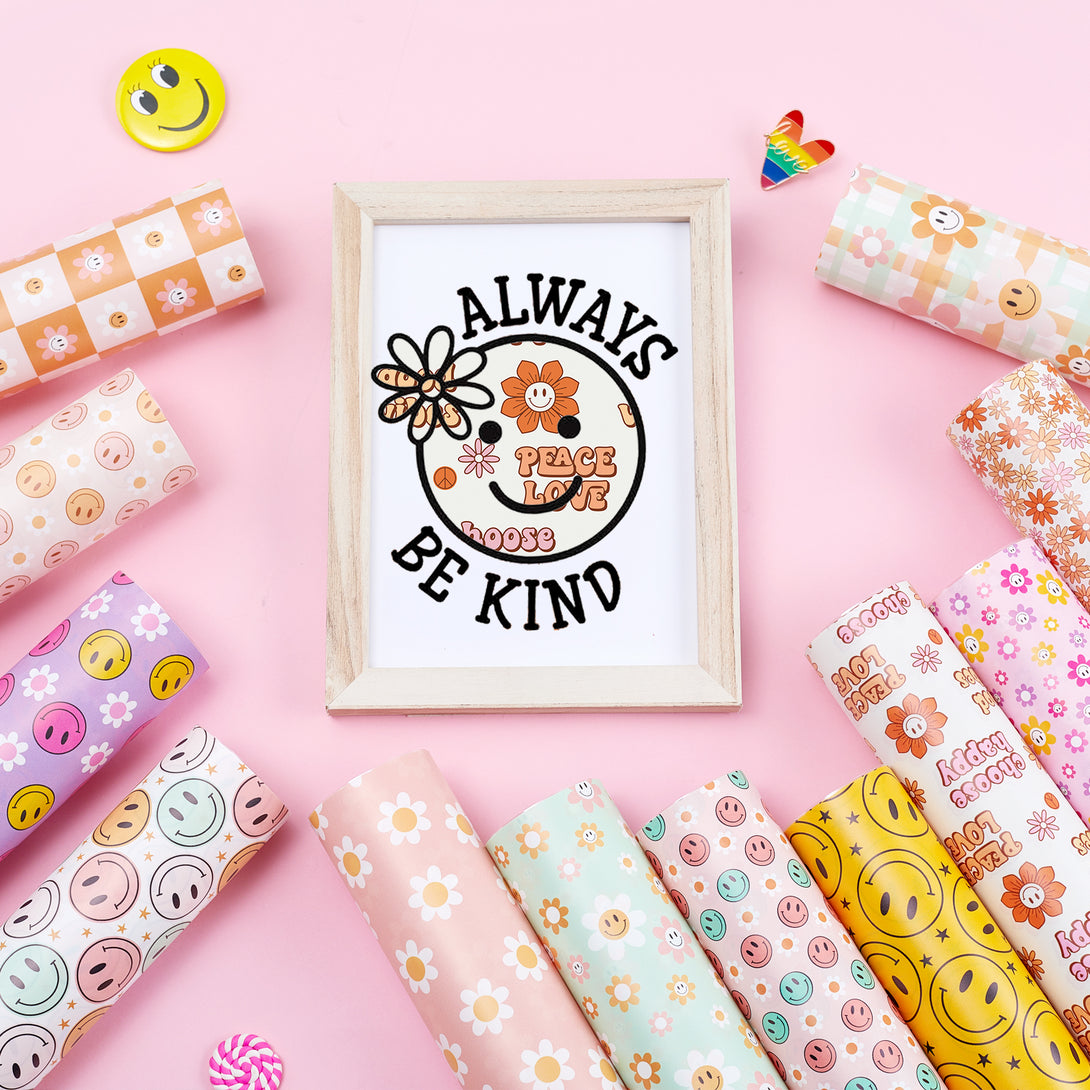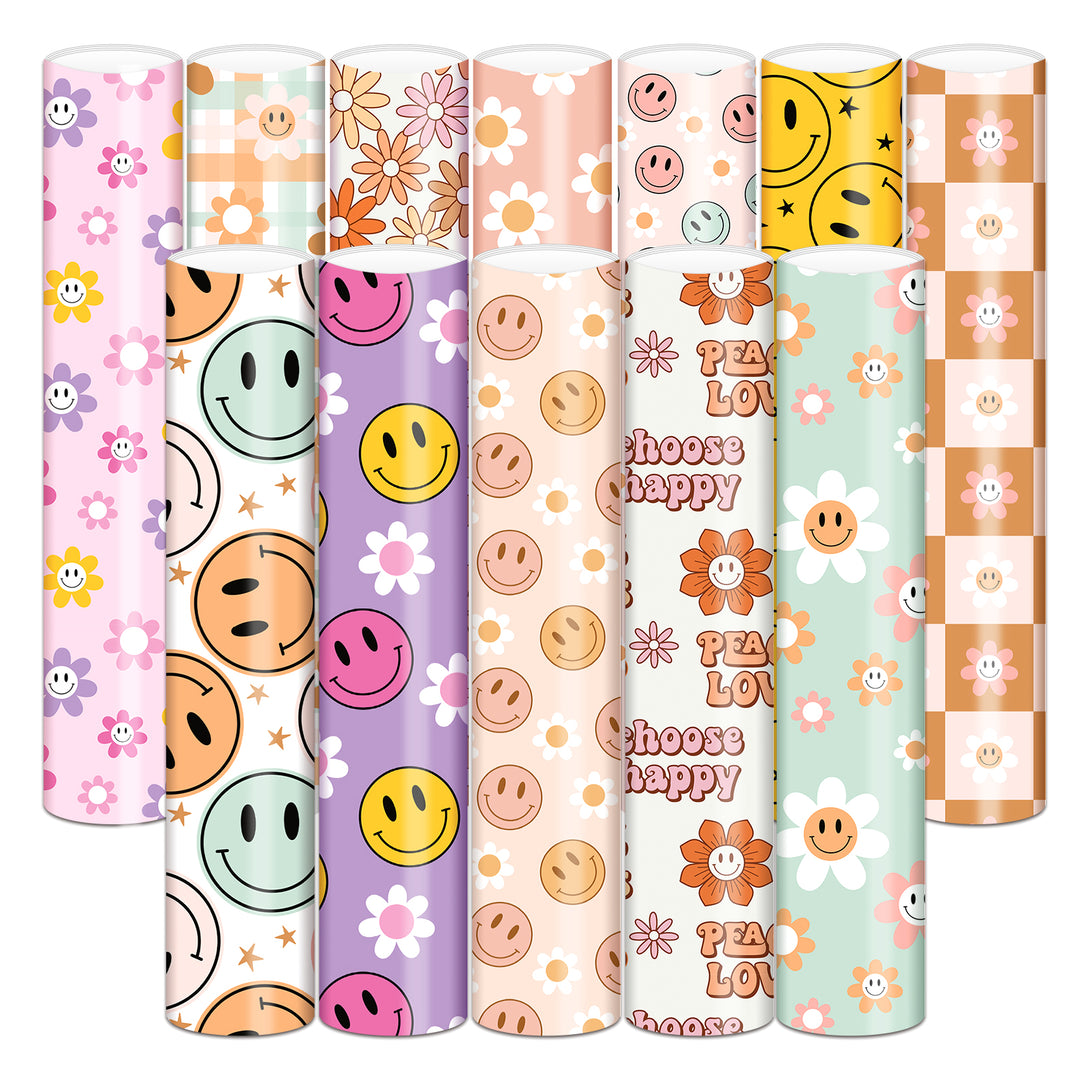Tintnut Smiley Face Permanent Vinyl,Daisy Flower Adhesive Vinyl, Groovy Pattern Vinyl, Permanent Outdoor Vinyl for Decor Sticker, Self Sticker Water proofing Vinyl