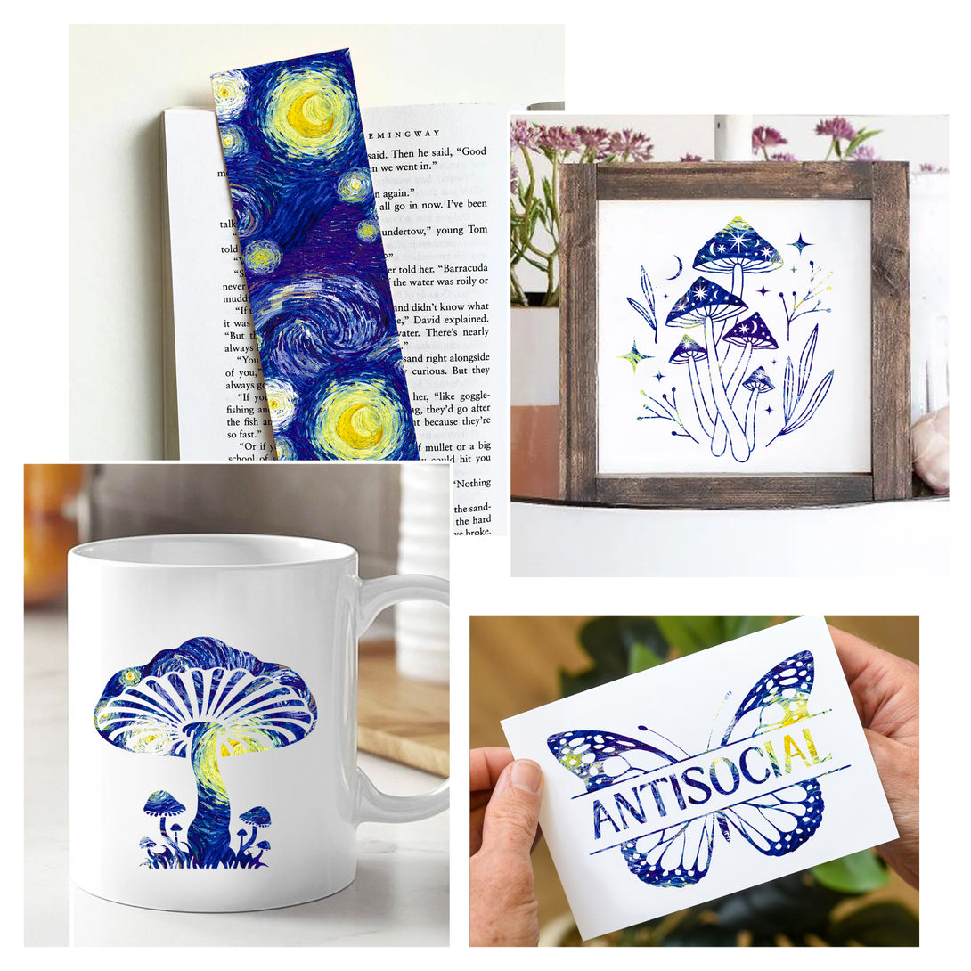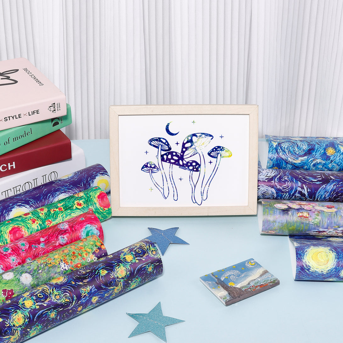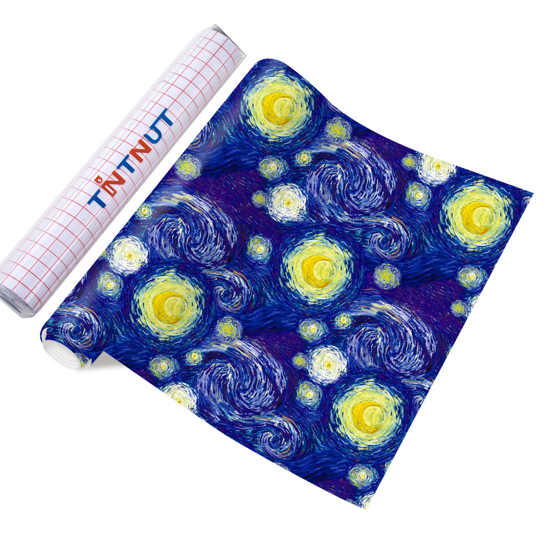 Tintnut Starry Night Permanent Vinyl,Impressionist Paintings Van Gogh Starry Sky Pattern Permanent Adhesive Vinyl for Cutting Machine, Home Decor Self Sticker