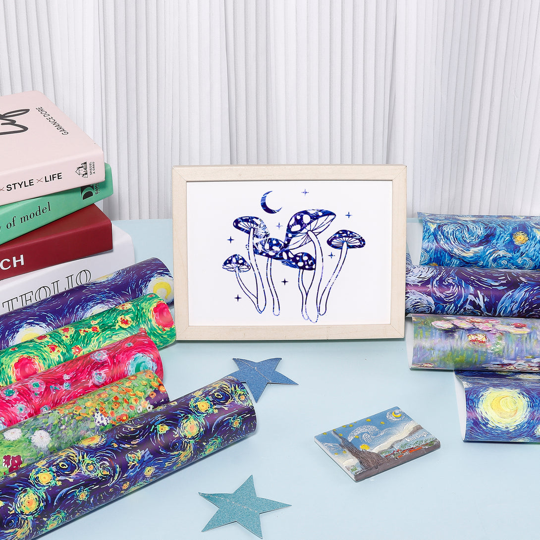 Tintnut Starry Night Permanent Vinyl,Impressionist Paintings Van Gogh Starry Sky Pattern Permanent Adhesive Vinyl for Cutting Machine,Self Sticker Water proofing Vinyl