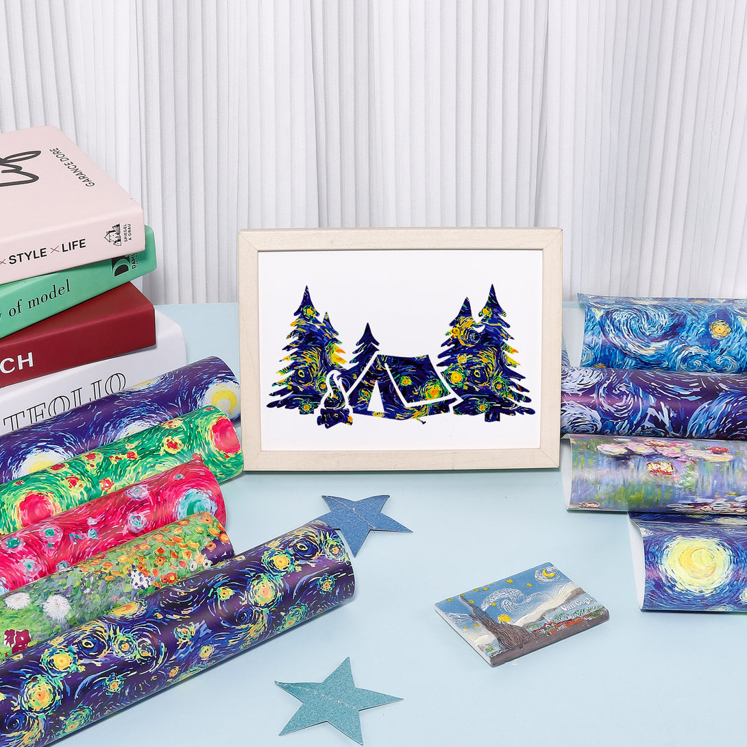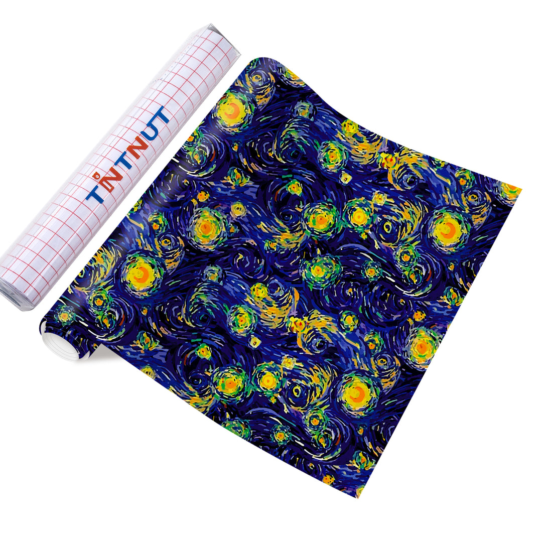 Tintnut Starry Night Permanent Vinyl,Impressionist Paintings Van Gogh Starry Sky Pattern Permanent Adhesive Vinyl for Decor Self Sticker