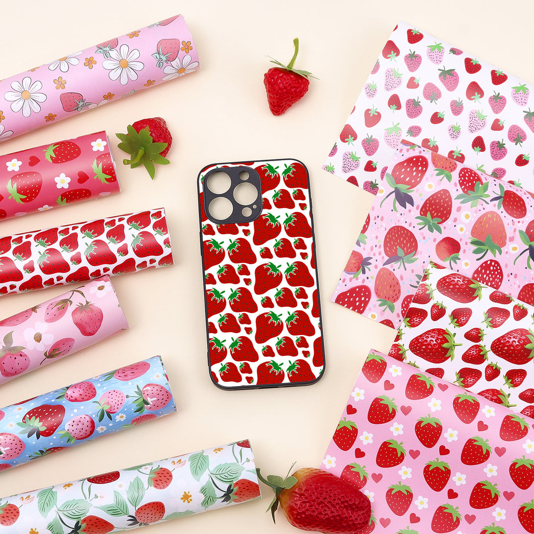 Tintnut Strawberry Permanent Adhesive Vinyl Flower Pattern Adhesive Vinyl Strawberry Flower Pattern Outdoor Vinyl