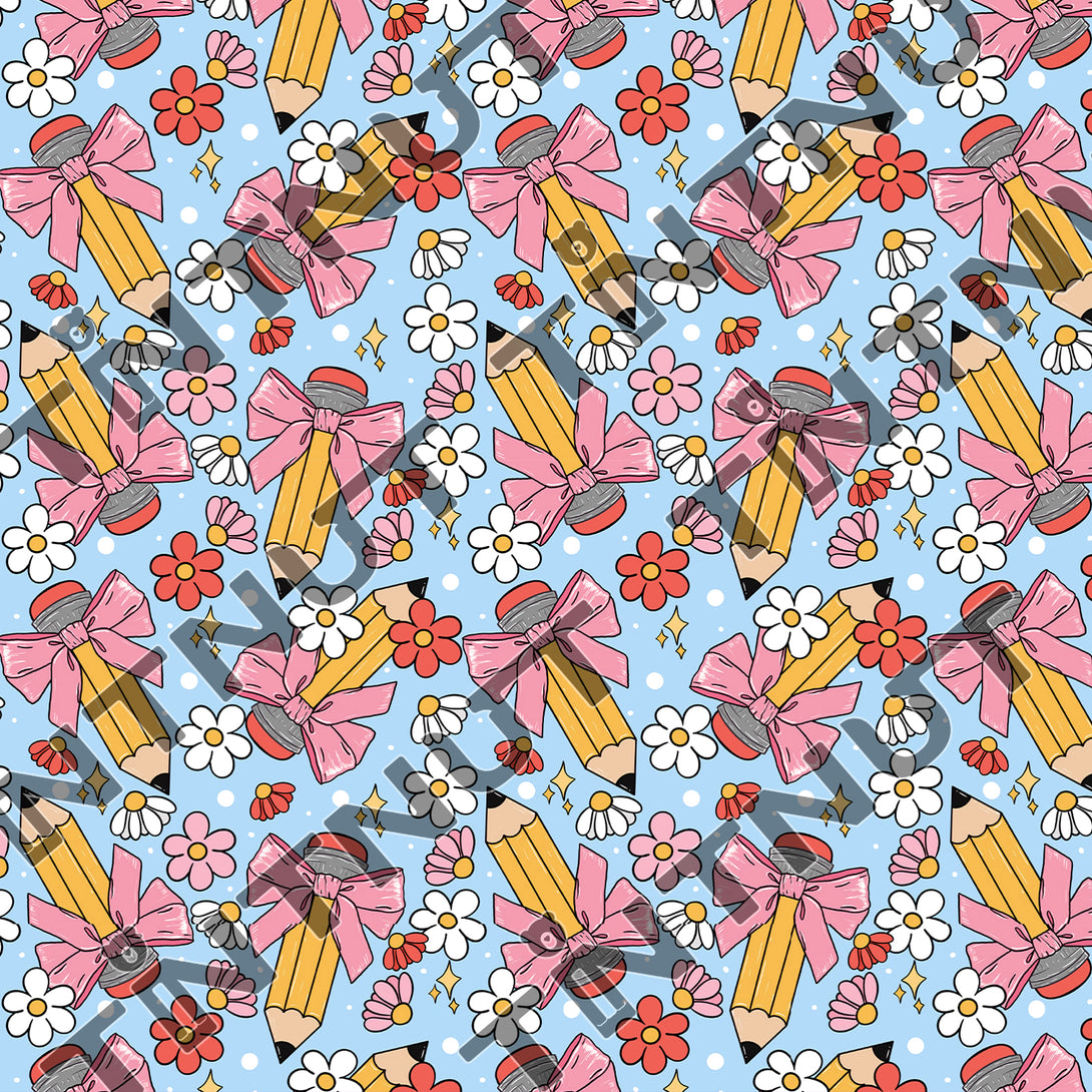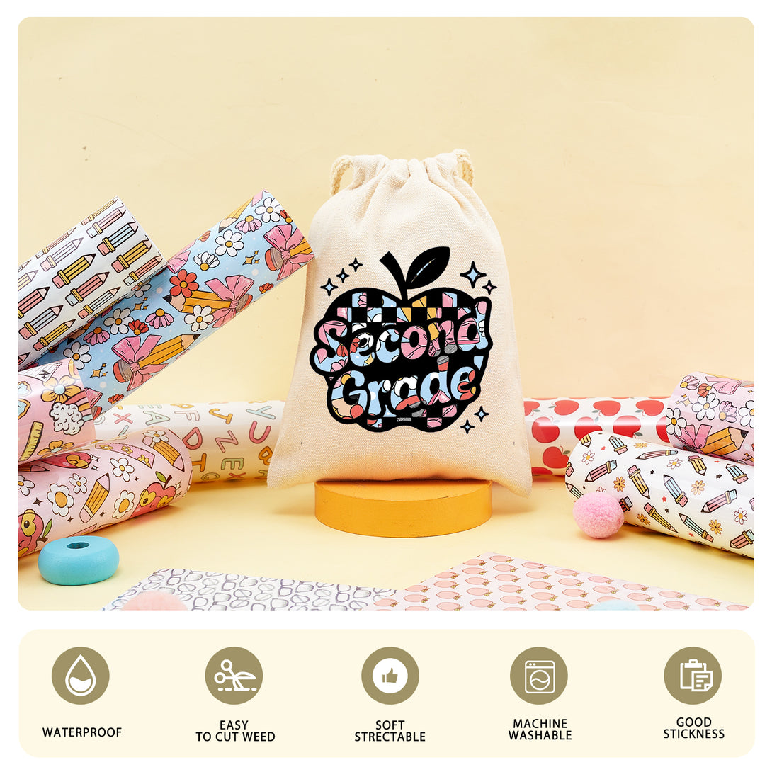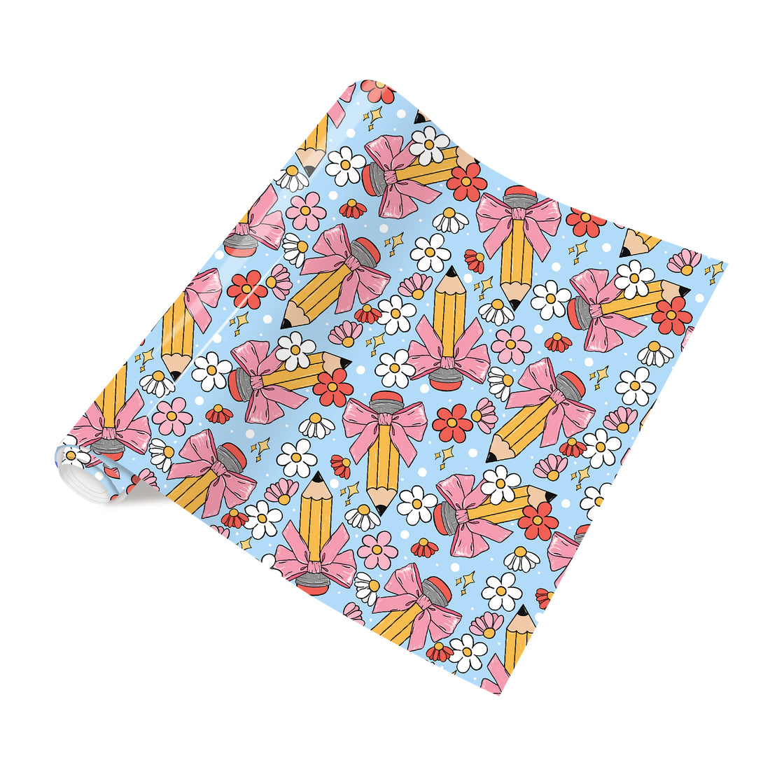 Tintnut Teachers' Day Blue Bow Pencil Clips Heat Transfer Vinyl Patterned HTV for Fabric Iron on Vinyl for T-Shirts Clothing