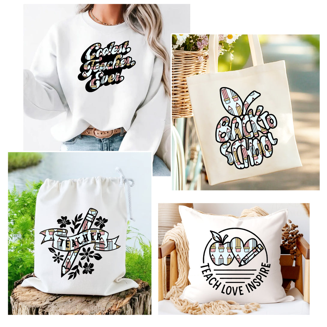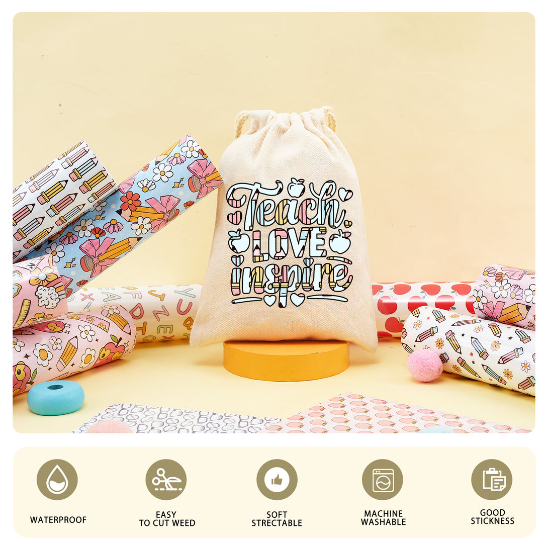 Tintnut Teachers' Day Blue Pencils Heat Transfer Vinyl Patterned HTV for Fabric Iron on Vinyl for T-Shirts Clothing