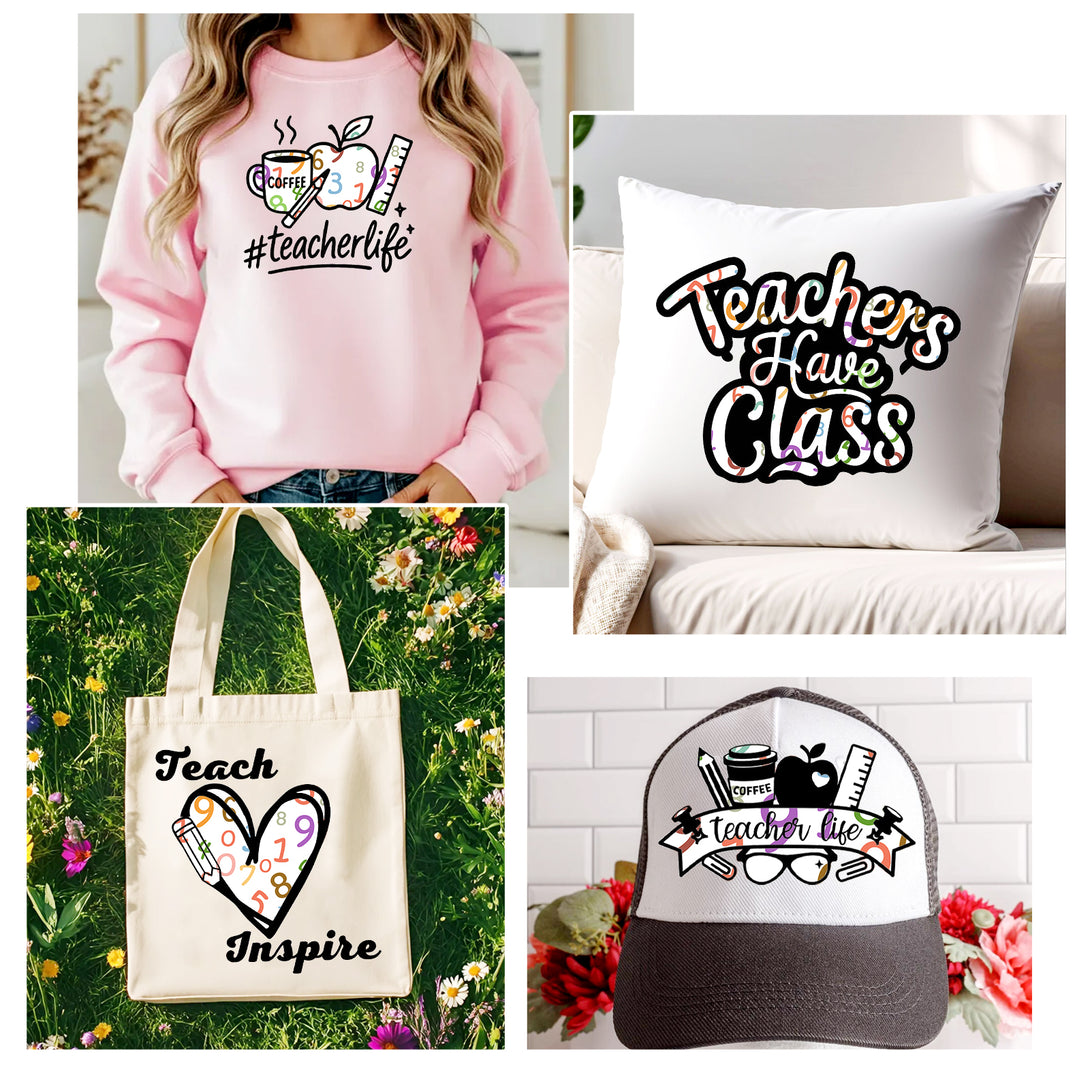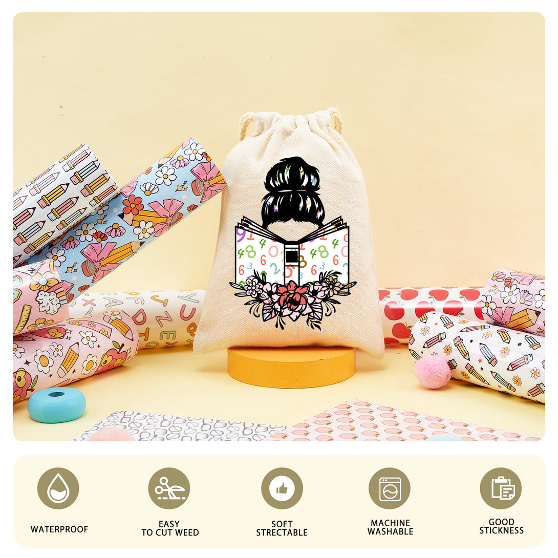 Tintnut Teachers' Day Colorful Numbers Heat Transfer Vinyl Patterned HTV for Fabric Iron on Vinyl for T-Shirts Clothing