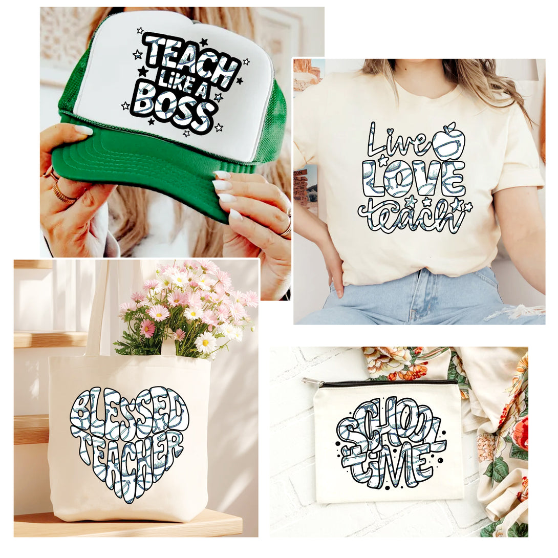 Tintnut Teachers' Day Glasses Clips Heat Transfer Vinyl Patterned HTV for Fabric Iron on Vinyl for T-Shirts Clothing