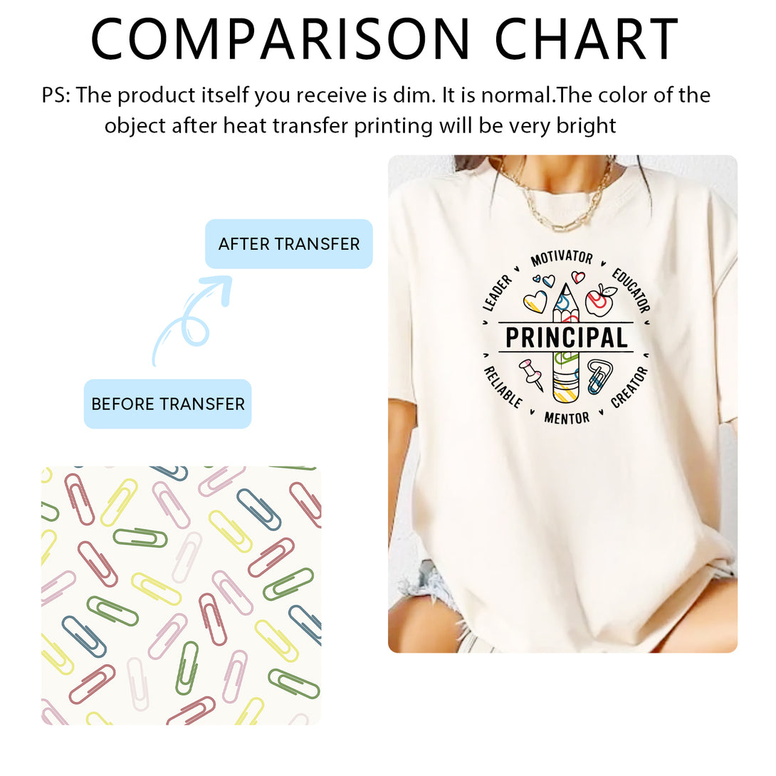 Tintnut Teachers' Day Pattern Sublimation Ink Transfer Sheets,Colored Paper Clips Sublimation Transfer Paper Compatible with Cricut for DIY Mugs,T-Shirts and Easy to use Transfer.