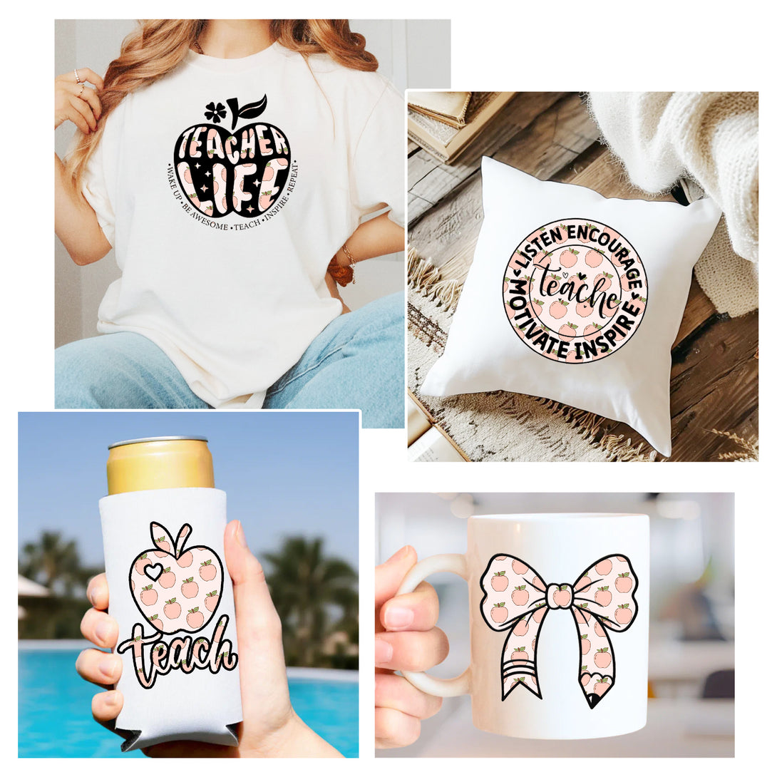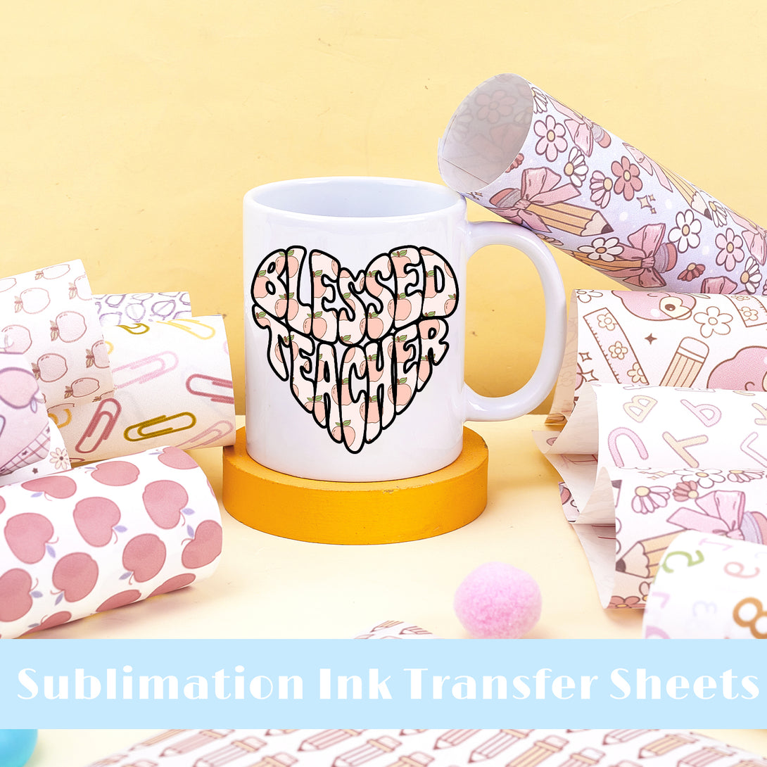 Tintnut Teachers' Day Pattern Sublimation Ink Transfer Sheets,Pink Apples Sublimation Transfer Paper Compatible with Cricut for DIY Mugs,T-Shirts and Easy to use Transfer.