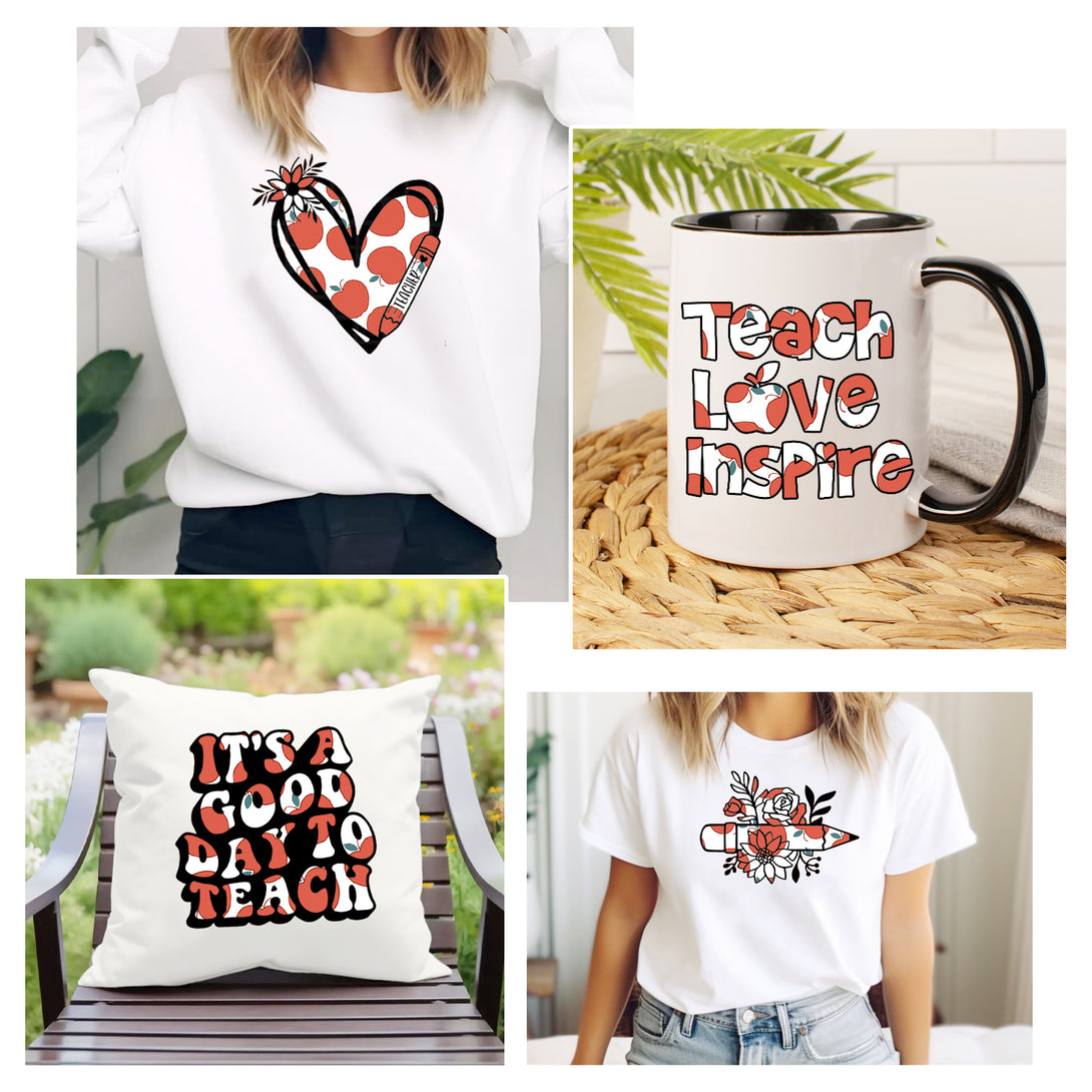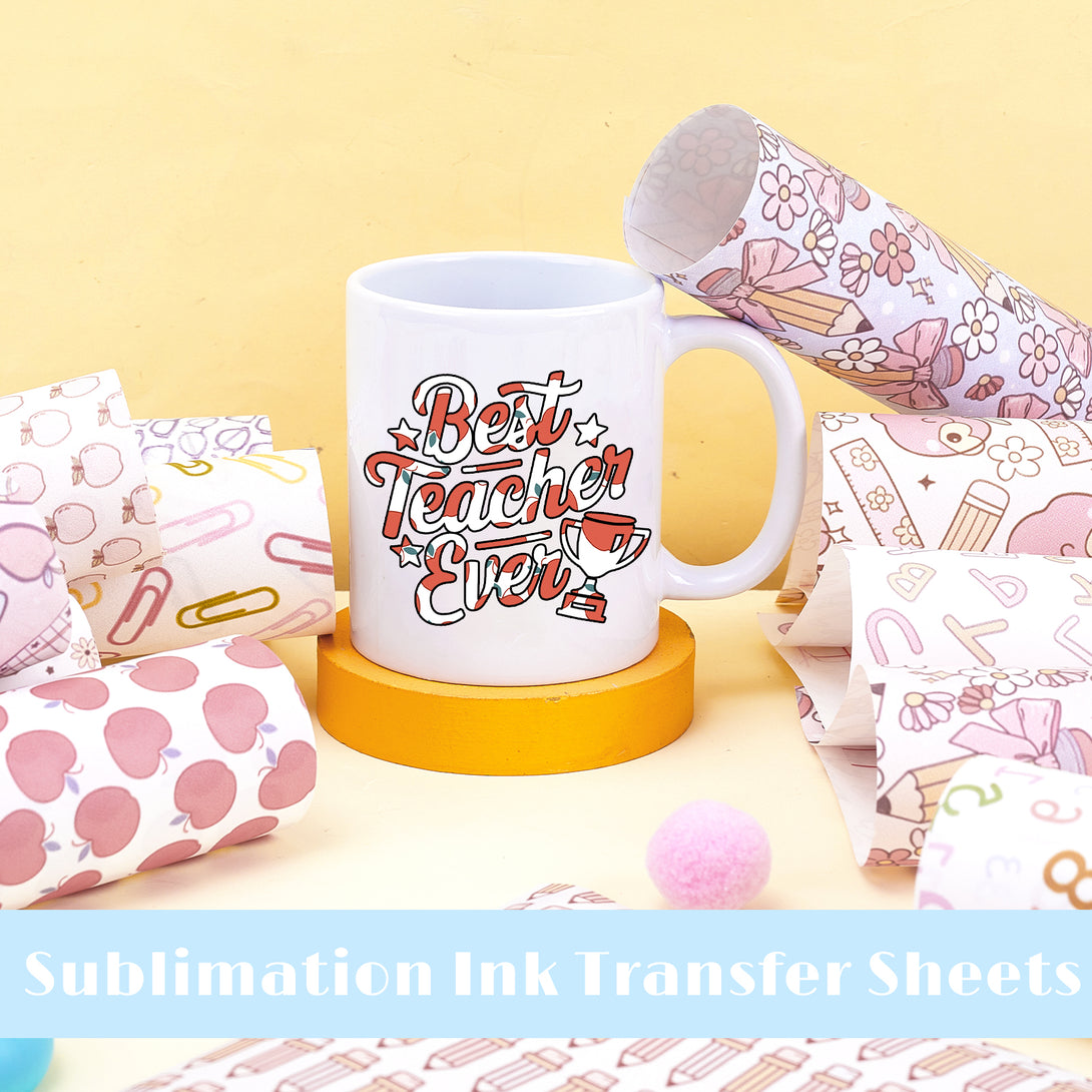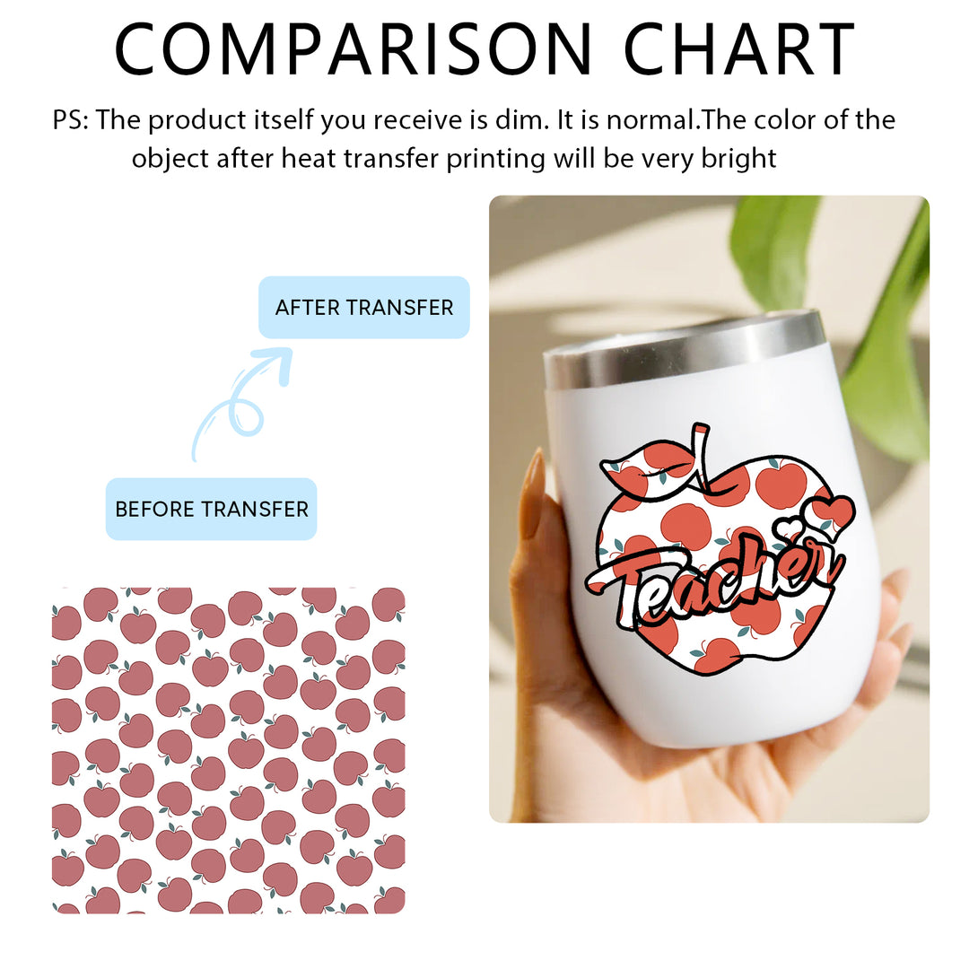 Tintnut Teachers' Day Pattern Sublimation Ink Transfer Sheets,Red Apples Sublimation Transfer Paper Compatible with Cricut for DIY Mugs,T-Shirts and Easy to use Transfer.