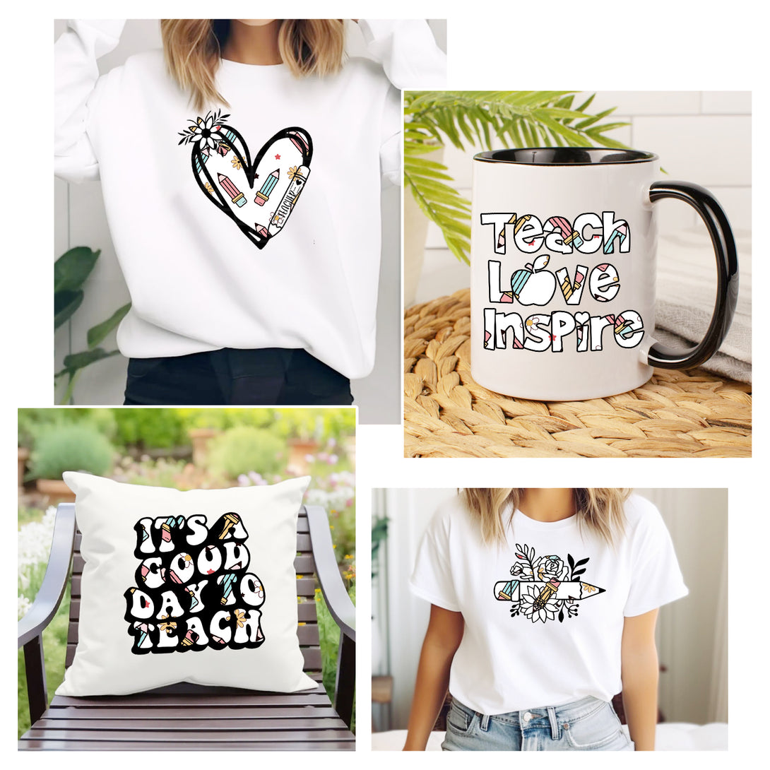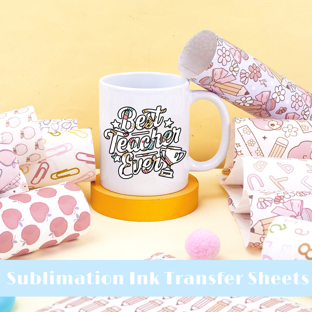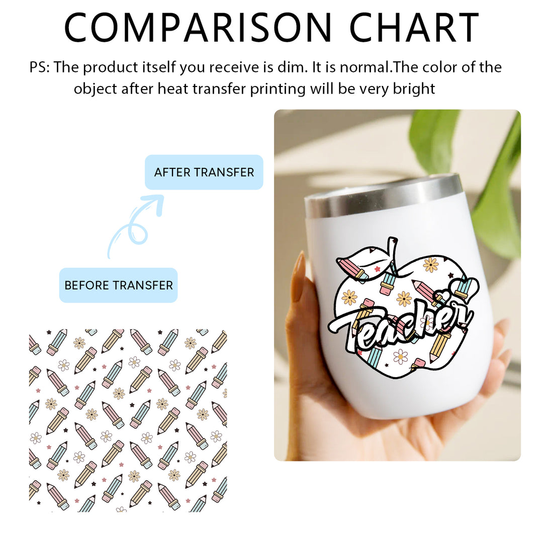 Tintnut Teachers' Day Pattern Sublimation Ink Transfer Sheets,White Pencils Sublimation Transfer Paper Compatible with Cricut for DIY Mugs,T-Shirts and Easy to use Transfer.