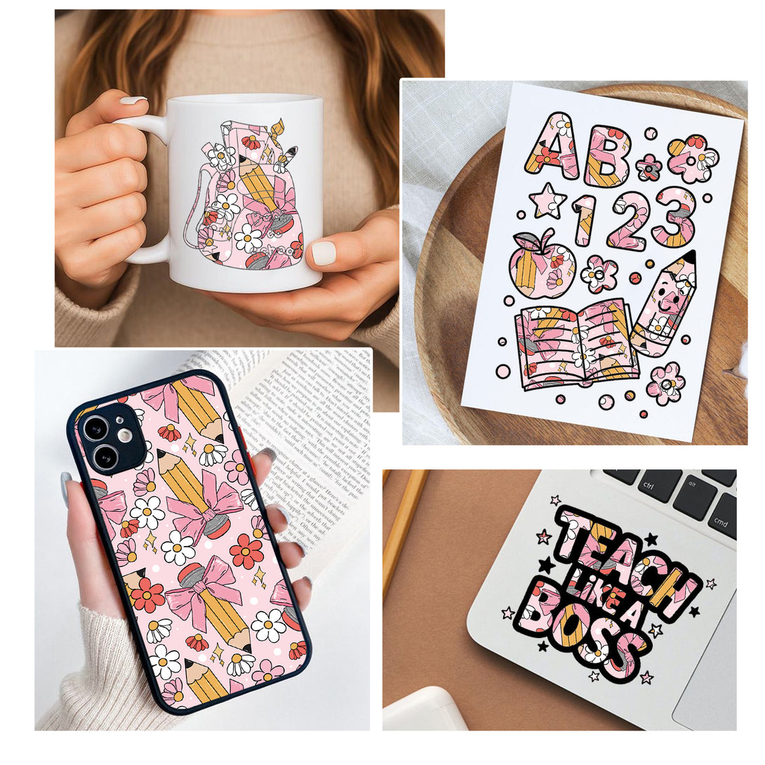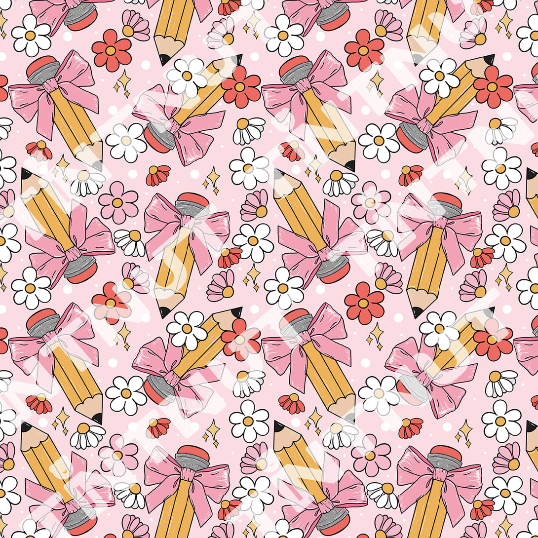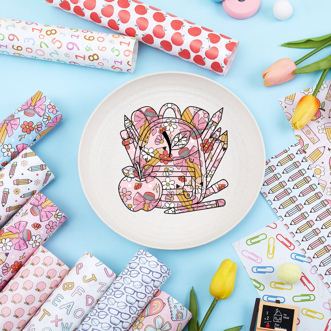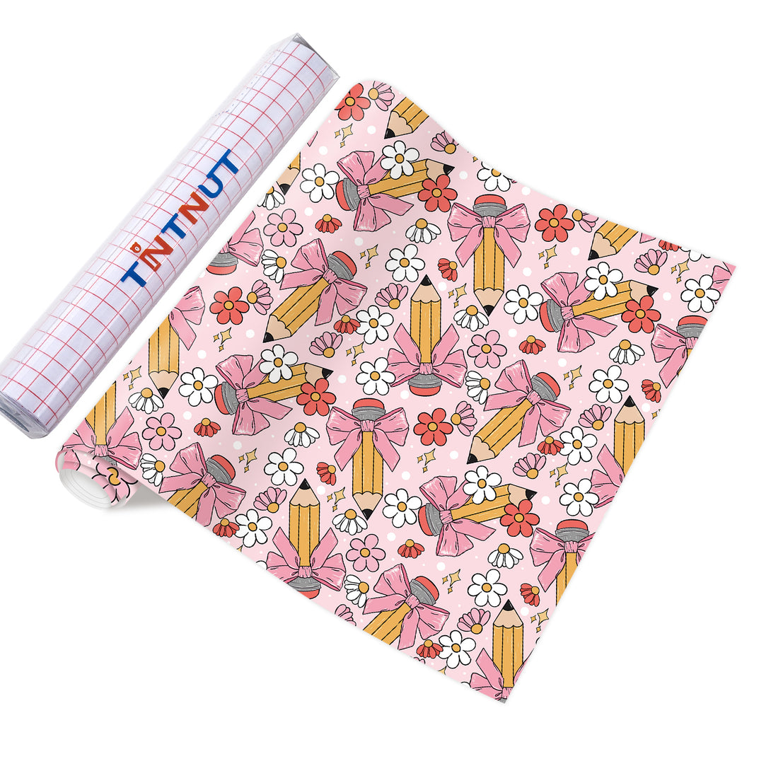 Tintnut Teachers' Day Pink Bow Pencil Clips Heat Parmanet Vinyl Adhesive Vinyl Sheets Self Sticker Water Proofing Vinyl