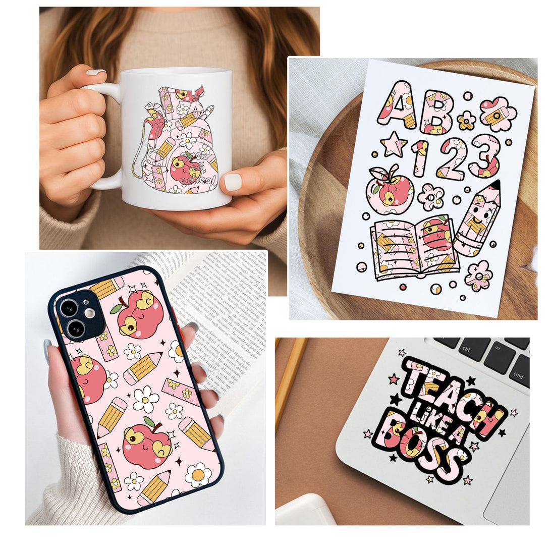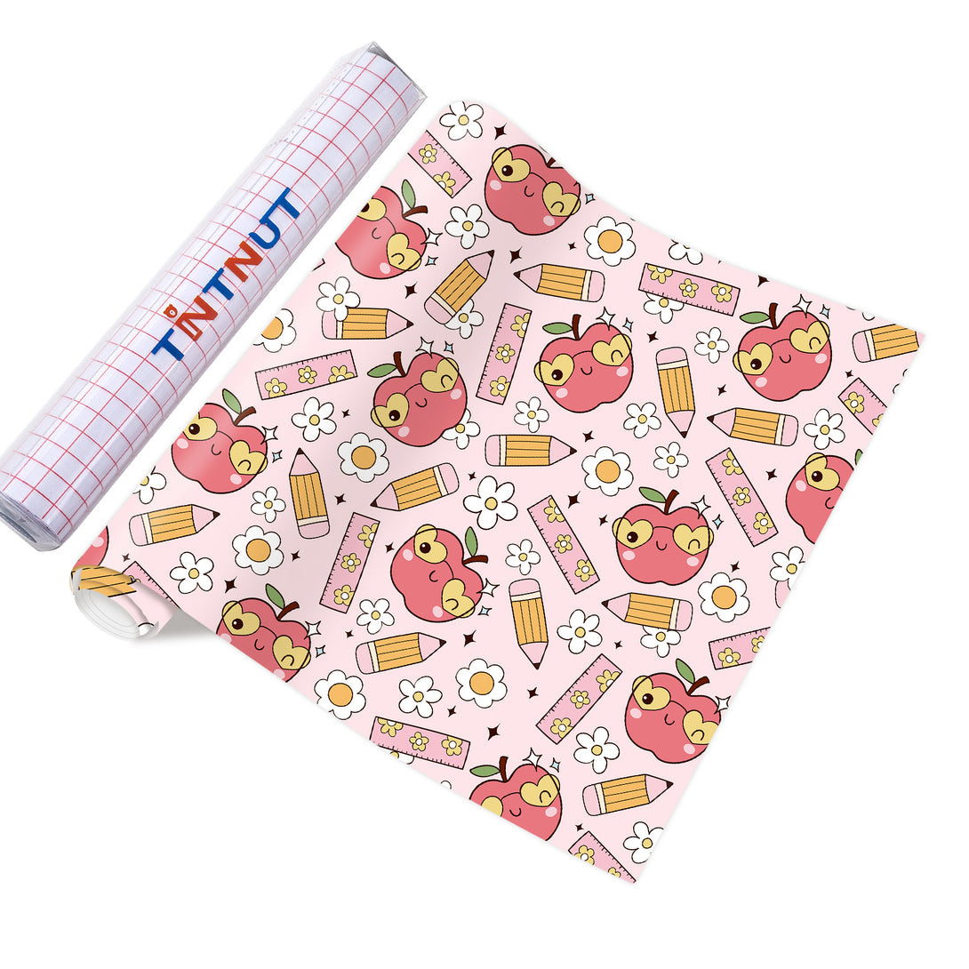 Tintnut Teachers' Day Pink Red Apples Heat Parmanet Vinyl Adhesive Vinyl Sheets Self Sticker Water Proofing Vinyl