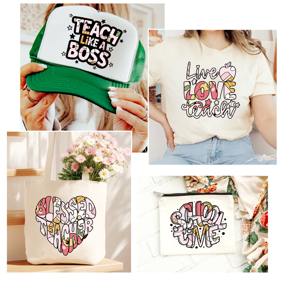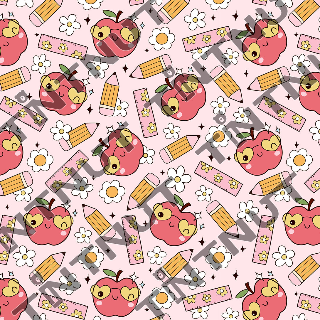 Tintnut Teachers' Day Pink Red Apples Heat Transfer Vinyl Patterned HTV for Fabric Iron on Vinyl for T-Shirts Clothing