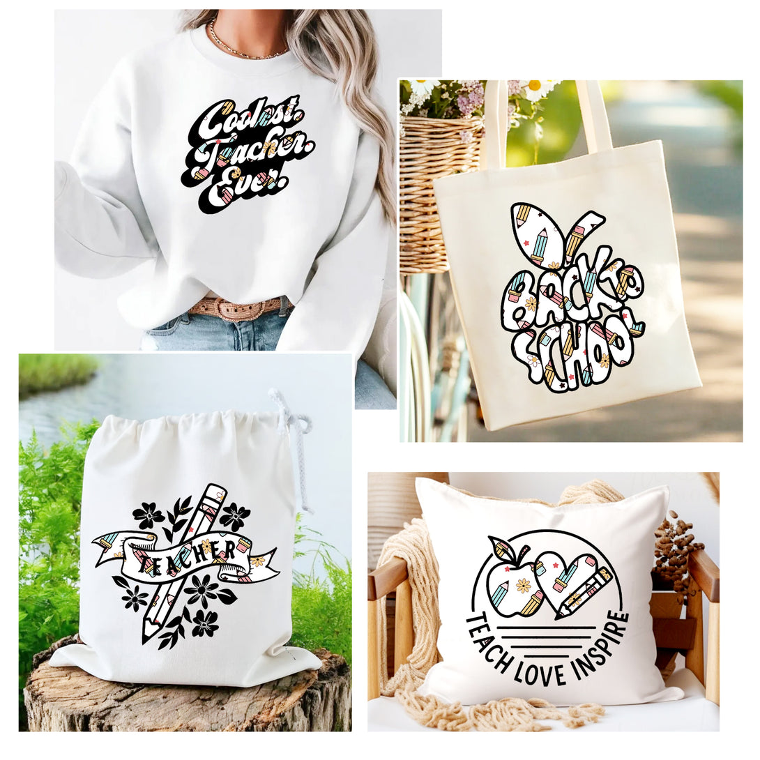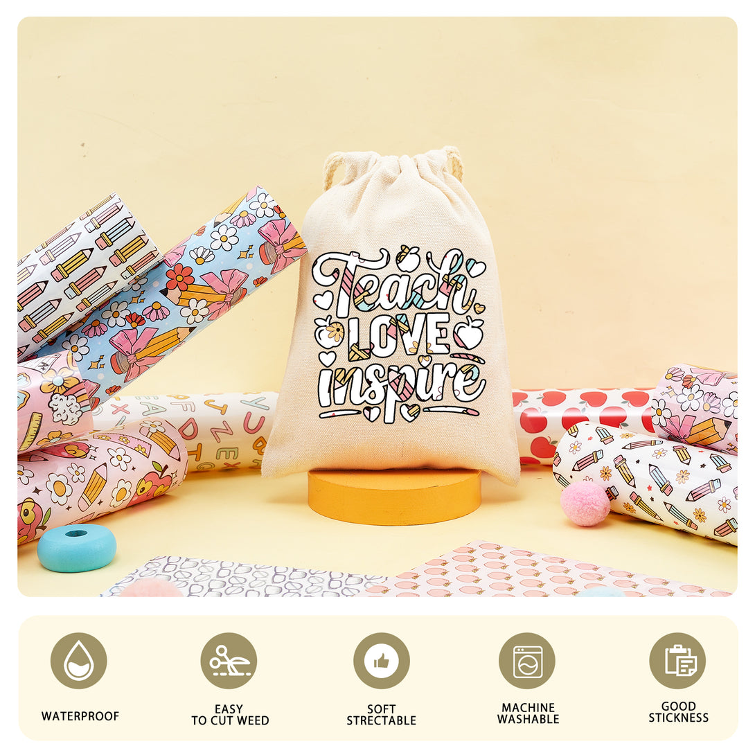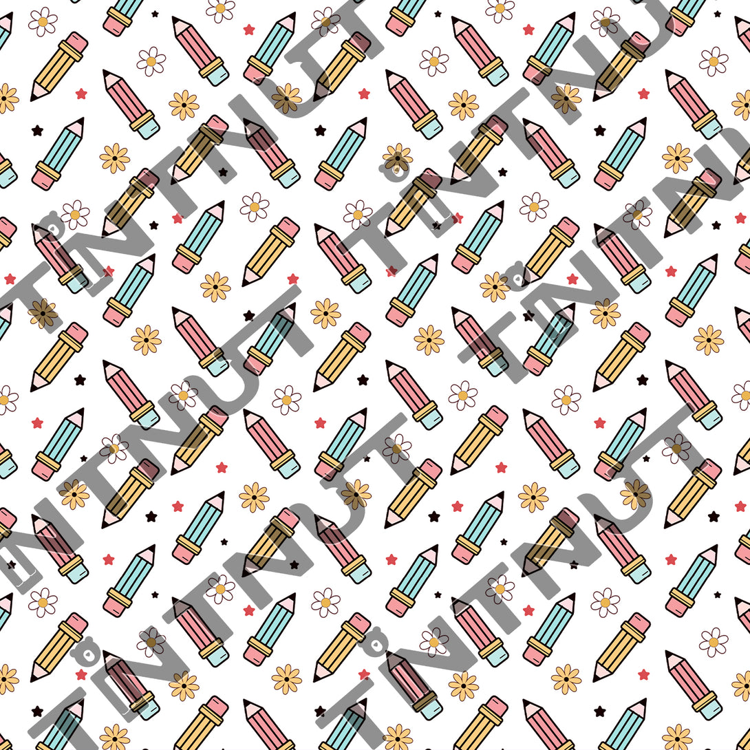 Tintnut Teachers' Day White Pencils Heat Transfer Vinyl Patterned HTV for Fabric Iron on Vinyl for T-Shirts Clothing