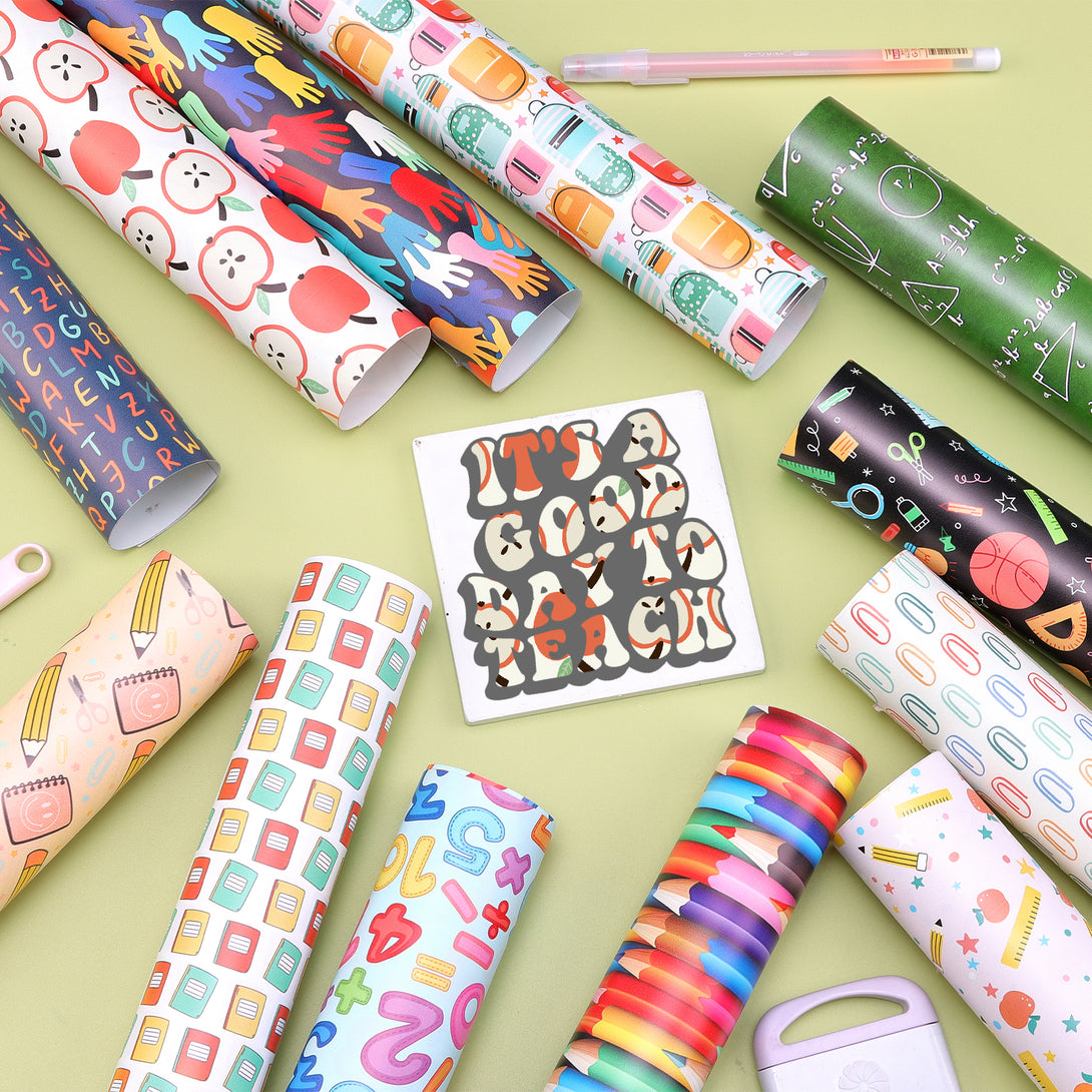 Tintnut Teachers Kindergarten Patterned Permanent Adhesive Vinyl,School Patterned Permanent Vinyl for Decor Sticker