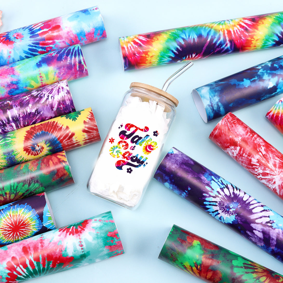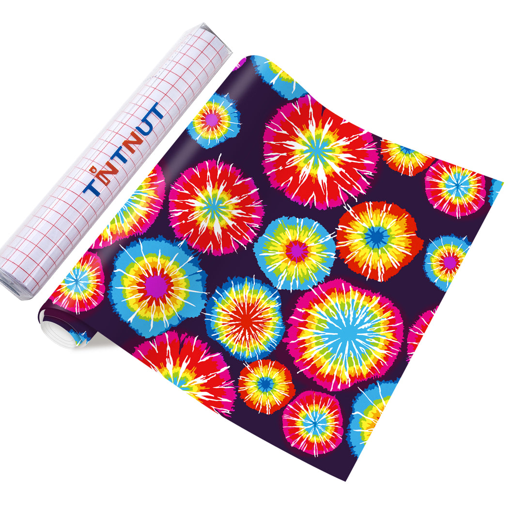 Tintnut Tie Dye Adhesive Vinyl, Swirl Pattern Permanent Vinyl, Seamless Colorful Self Sticker Water proofing Vinyl
