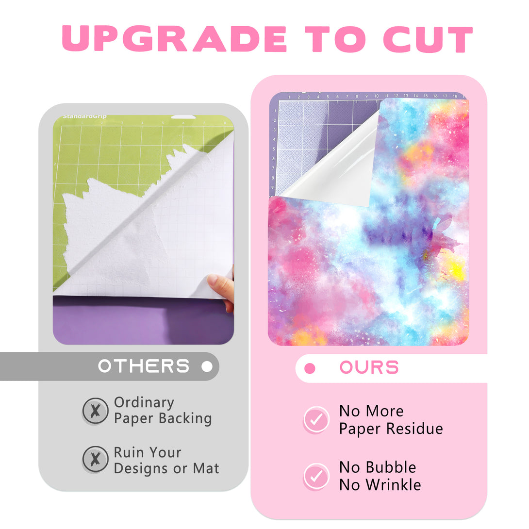 Tintnut Tie Dye Permanent Vinyl Pink Purple Blue Block Gradient Watercolor Art Patterned Adhesive Vinyl Sheets, Waterproof Self Sticker for DIY Crafts