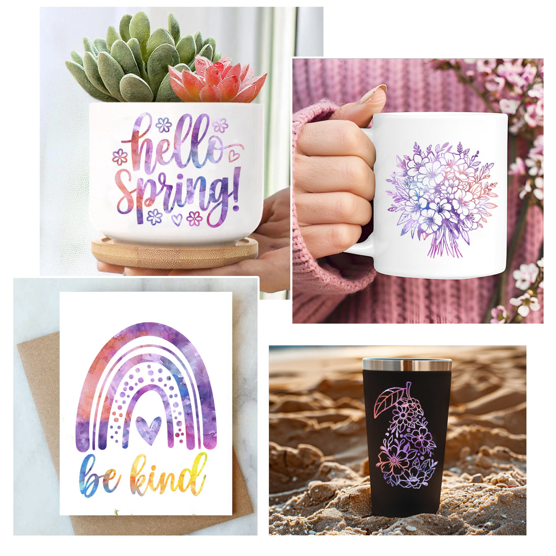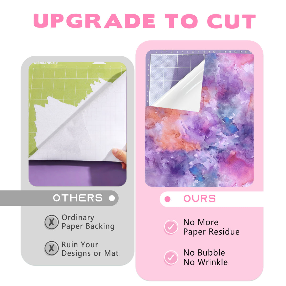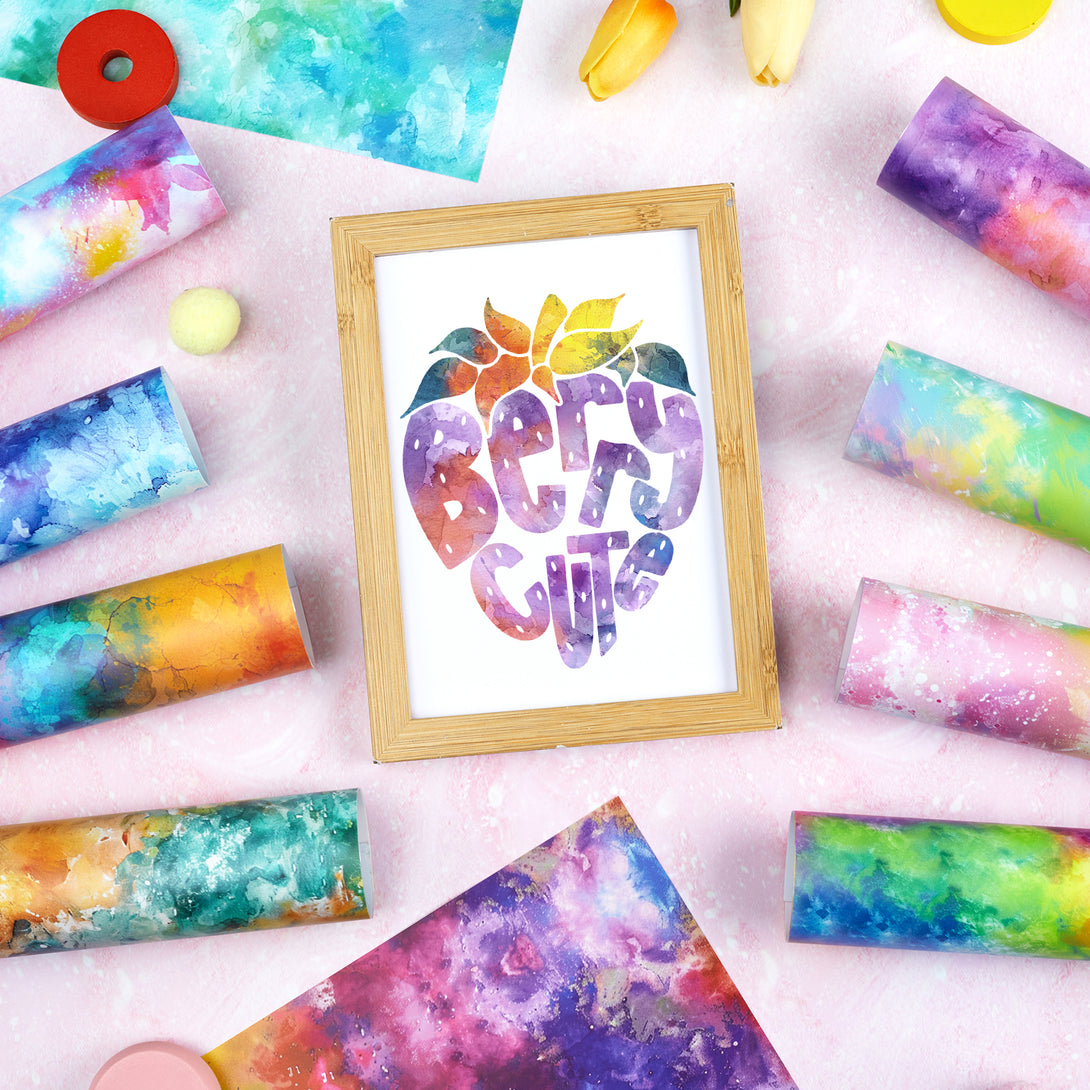 Tintnut Tie Dye Permanent Vinyl Purple Pink Block Gradient Watercolor Art Patterned Adhesive Vinyl Sheets, Waterproof Self Sticker for DIY Crafts