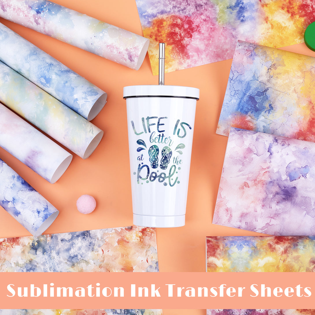 Tintnut Tie Dye Sublimation Transfer Paper,Blue Purple Block Gradient Watercolor Pattern Sublimation Transfer Sheets Compatible with ALL Machine and Easy to use Weed.