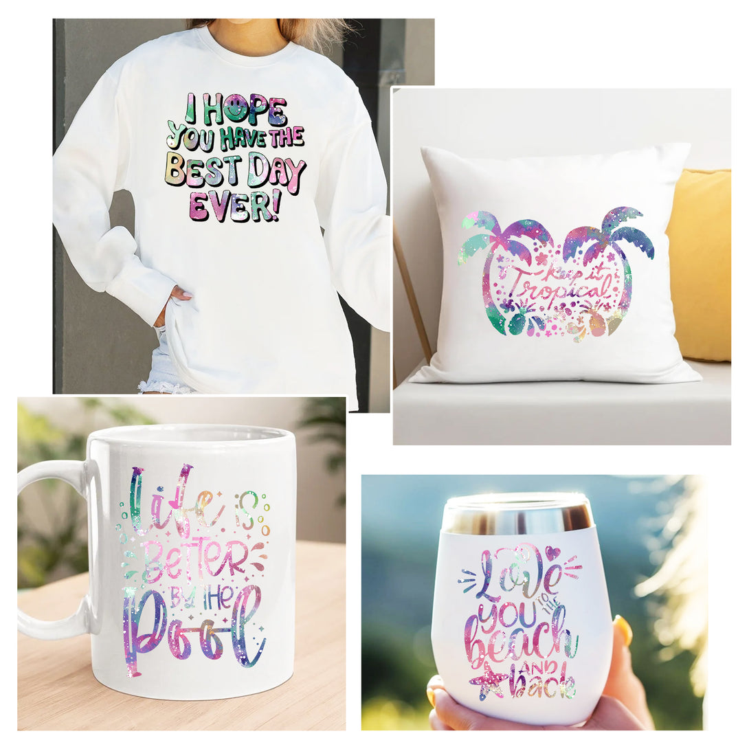 【WIDELY TRANSFER】This iron on vinyl can be use to do your own design of T-shirts, shoes, caps, coffee bags,handbag, pillows and so on. Widely applied on many fabric for cotton, polyester and cotton fabrics.