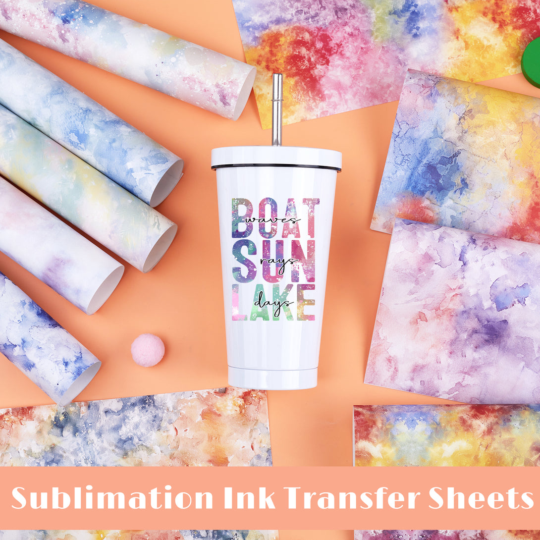Tintnut Tie Dye Sublimation Transfer Paper,Pink Purple Block Gradient Watercolor Pattern Sublimation Transfer Sheets Compatible with ALL Machine and Easy to use Weed.
