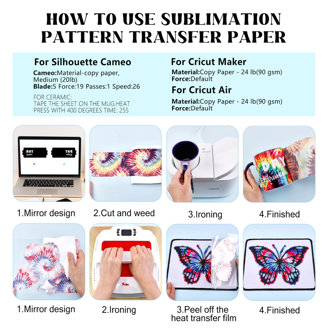 - 【Easy to Cut and Transfer】Our sublimation transfer sheets can easily weed and transfer your design and perfectly suited most machine.The most important,our product are convenience that is simple and easy to transfer and use.