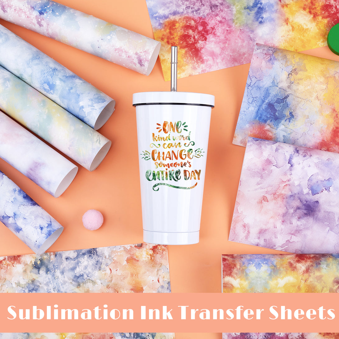 Tintnut Tie Dye Sublimation Transfer Paper,Yellow Orange Block Gradient Watercolor Pattern Sublimation Transfer Sheets Compatible with ALL Machine and Easy to use Weed.