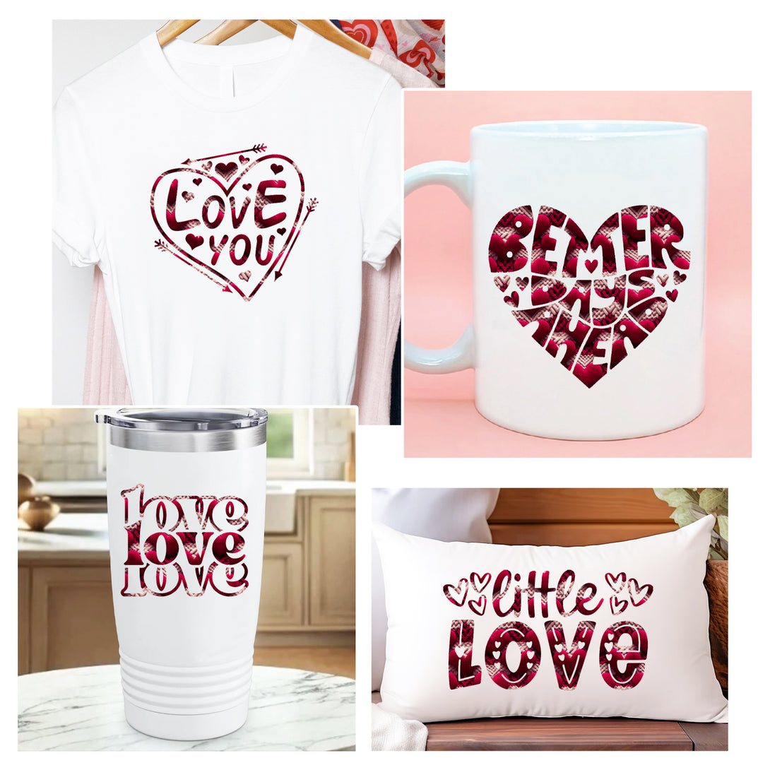 Tintnut Valentine's Day Sublimation Transfer Paper,Heart Pattern Sublimation Ink Transfer Sheets Compatible with ALL Machine and Easy to use Transfer.