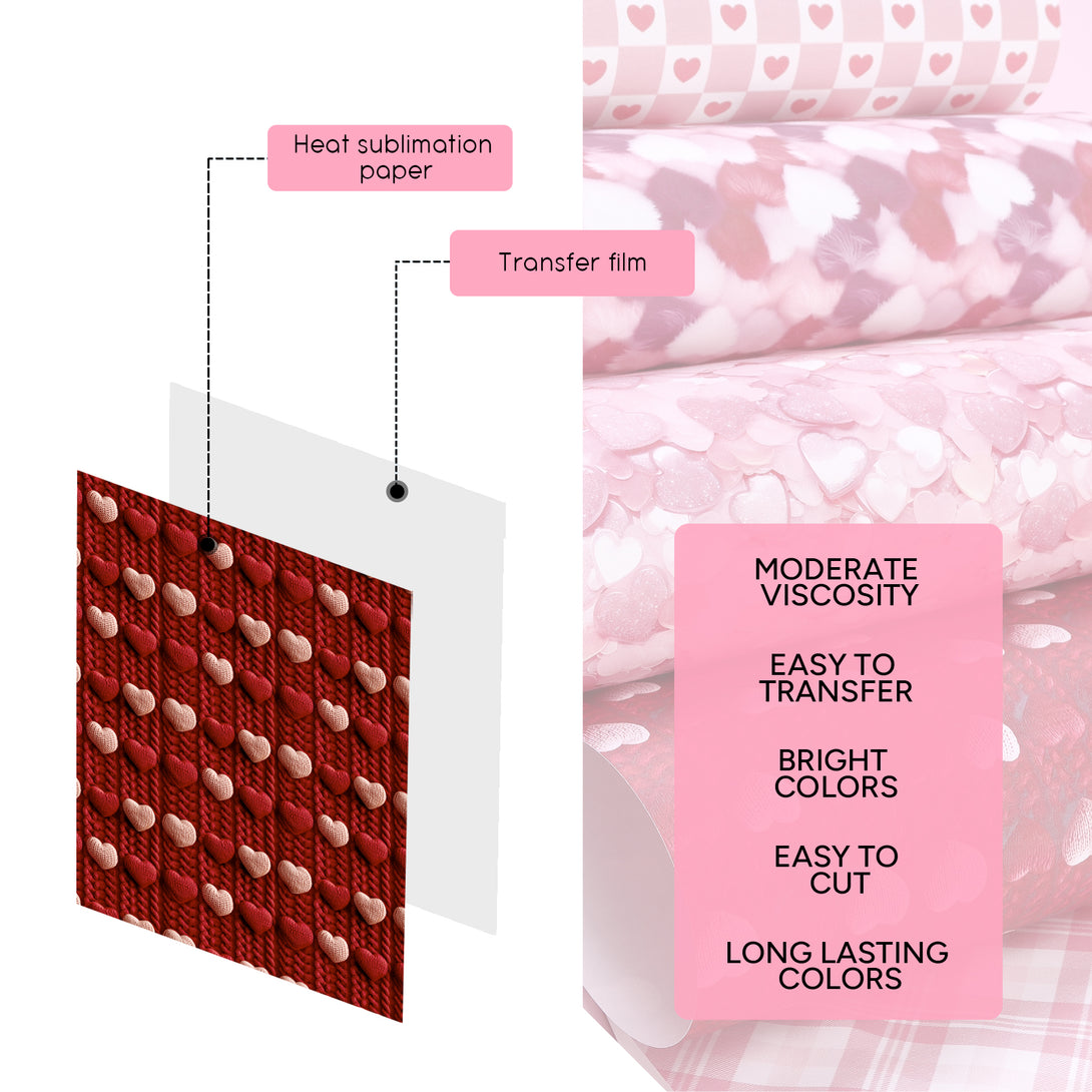 Tintnut Valentine's Day Sublimation Transfer Paper,Heart Pattern Sublimation Ink Transfer Sheets Compatible with ALL Machine and Easy to use Weed.