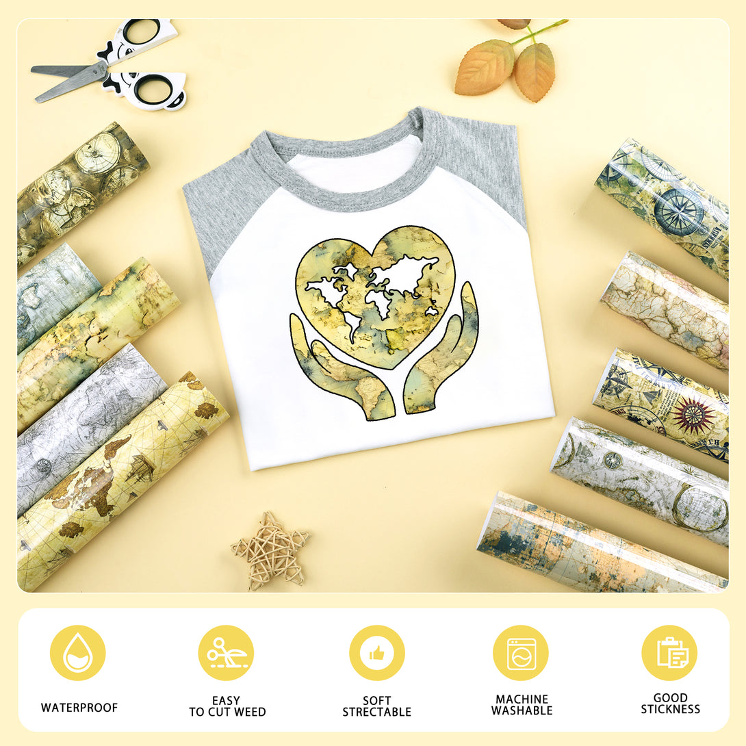 Tintnut Vintage Map Amber Retro Map Pattern Heat Transfer Vinyl Patterned HTV for Fabric Iron on Vinyl for T-Shirts