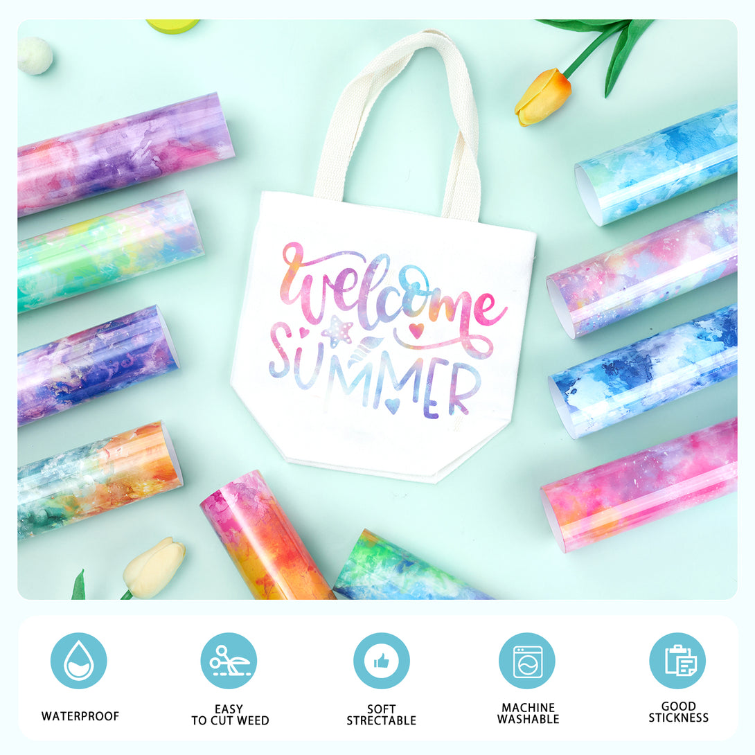Tintnut Watercolor Art Pink Purple Blue Block Gradient Heat Transfer Vinyl Patterned HTV for Fabric Iron on Vinyl for T-Shirts