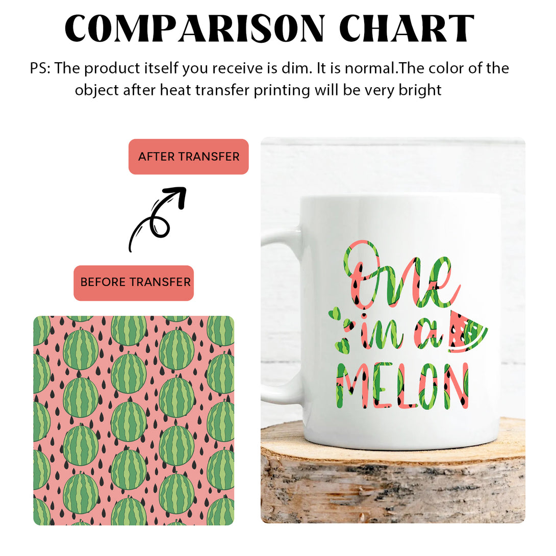 Tintnut Watermelon Sublimation Transfer Paper,Watermelon Pattern Sublimation Ink Transfer Sheets Compatible with Cricut for DIY Mugs,T-Shirts and Easy to use Weed.