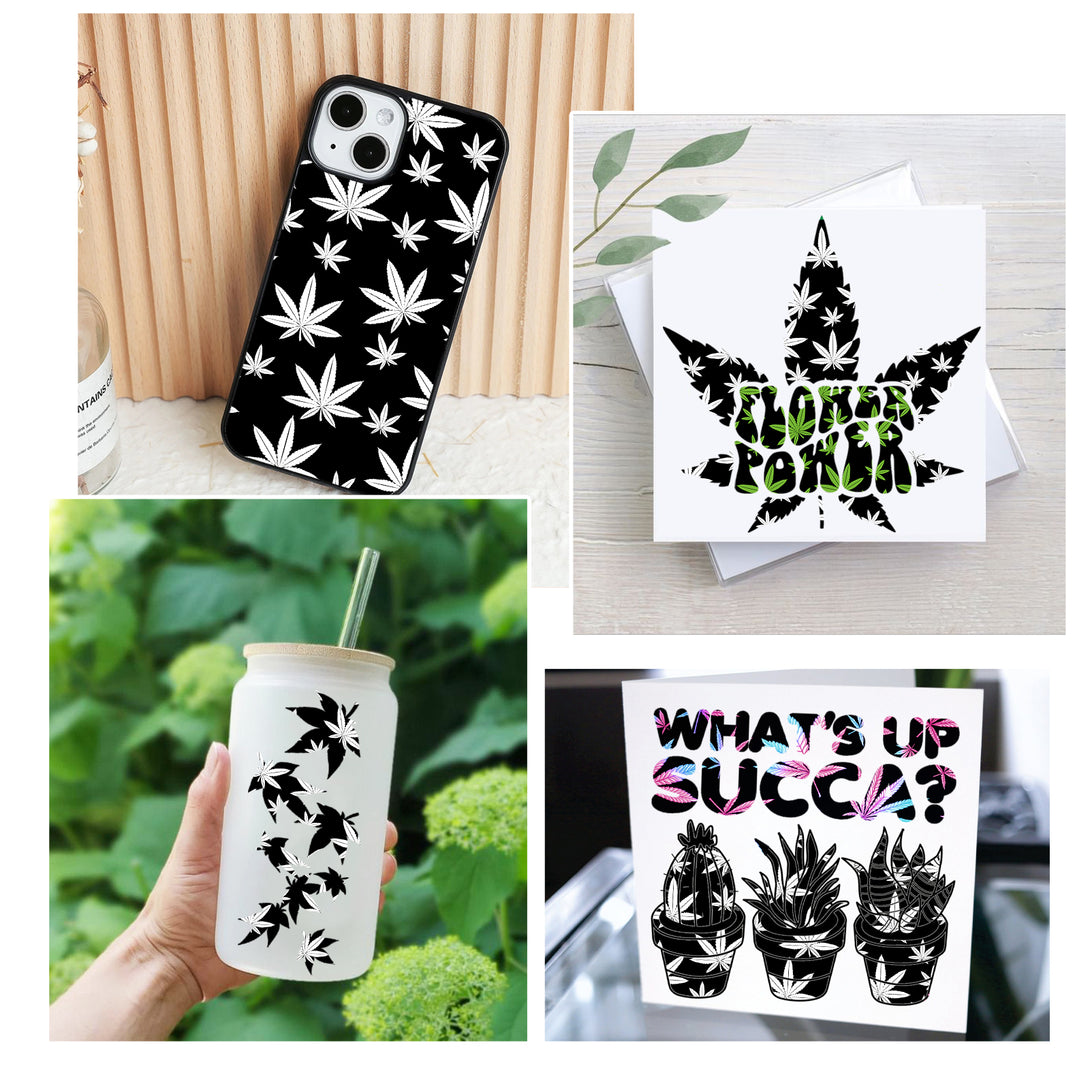 Tintnut Weed Leaf Pattern Permanent Adhesive Vinyl, Cannabis Self Adhesive Vinyl Marijuana Leaves Outdoor Vinyl for Decor Sticker